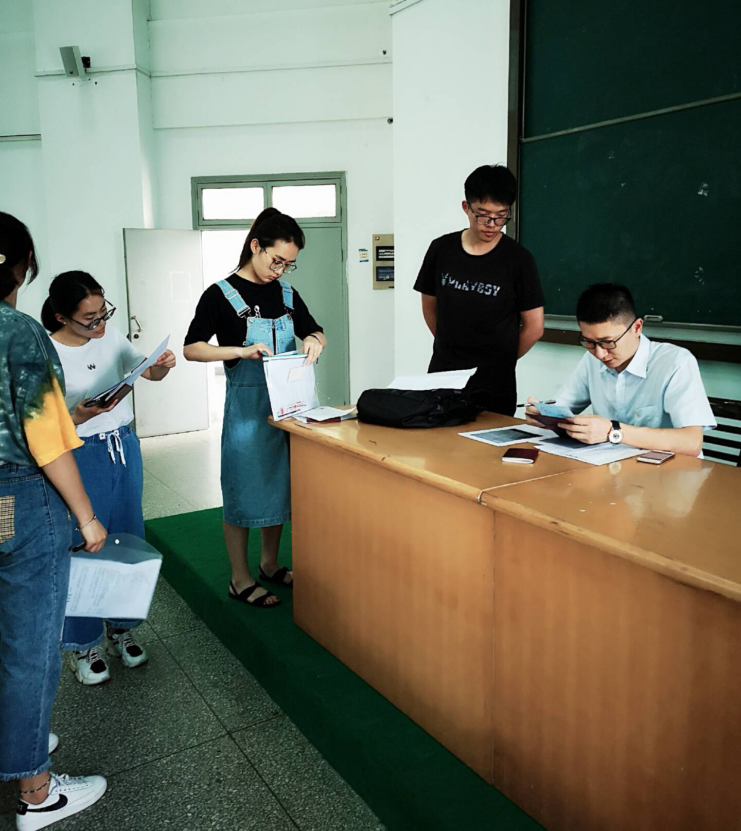 毫无疑问,上门服务不在国际交流中心的工作职责之内。今年高进淳主任亲自前来,耐心热情地指导学生填表,仔细核实学生提交的每一分材料,2个小时内,52名同学们的签证手续顺利办好。