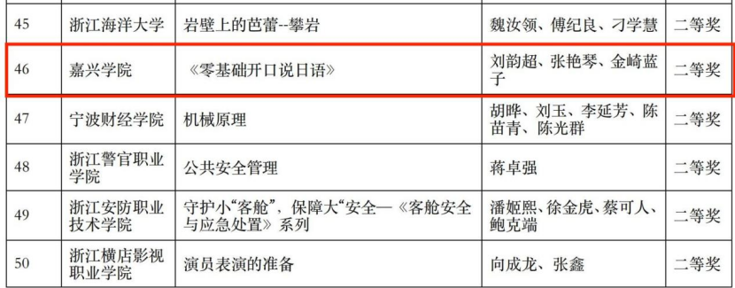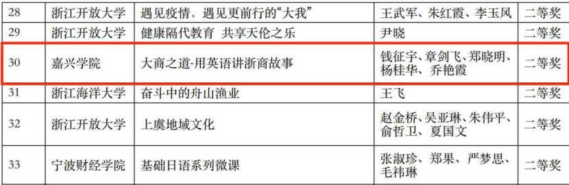 近日,2021年浙江省高校教师教育技术成果评比结果揭晓,我院推荐选送的作品喜获佳绩。其中,丁斓斓老师的作品《“大学韩语”系列微课》荣获一等奖,这是我校此次斩获的唯一一项一等奖;钱征宇、章剑飞、郑晓明、杨桂华、乔艳霞的作品《大商之道—用英语讲浙商故事》和刘韵超、张艳琴、金崎蓝子的作品《零基础开口说日语》荣获二等奖。