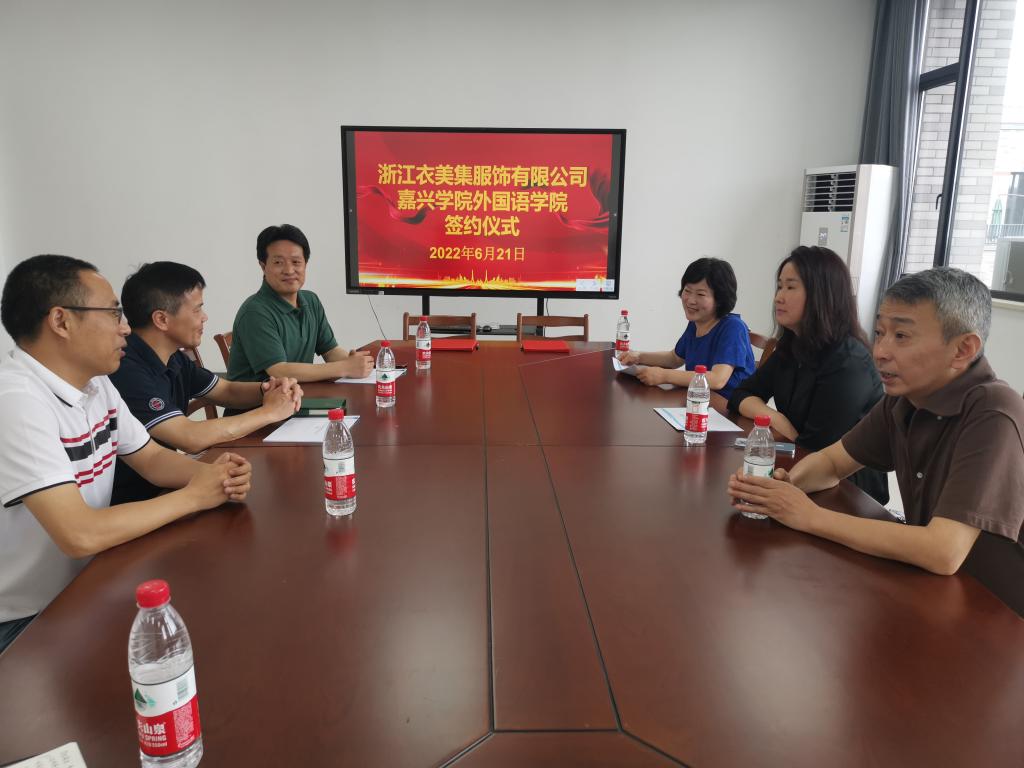 6月21日上午,beat365在线唯一官网与浙江衣美集服饰有限公司在兴德楼南楼516举行校企合作签约仪式,双方就共建实践教学基地等方面进行洽谈。会议由副院长郭永恩主持,学院院长唐艳芳、副院长喻锋平,国际交流与合作处副处长李月顺参加签约仪式。