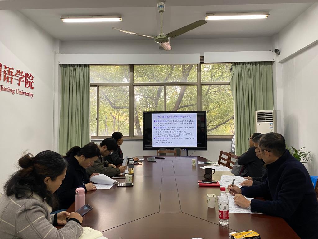 12月6日上午,beat365在线唯一官网2020年度校级课程课改类项目结项验收评审会议在外语楼204会议室召开,对2017年和2018年立项的校级特色示范课(B1)、视频资源课(B2)和课堂教学改革项目(B4)进行结项验收。会议由喻锋平副院长主持,陶丹玉、张静、杨泓、鲁俊丰四位项目负责人参加验收答辩。