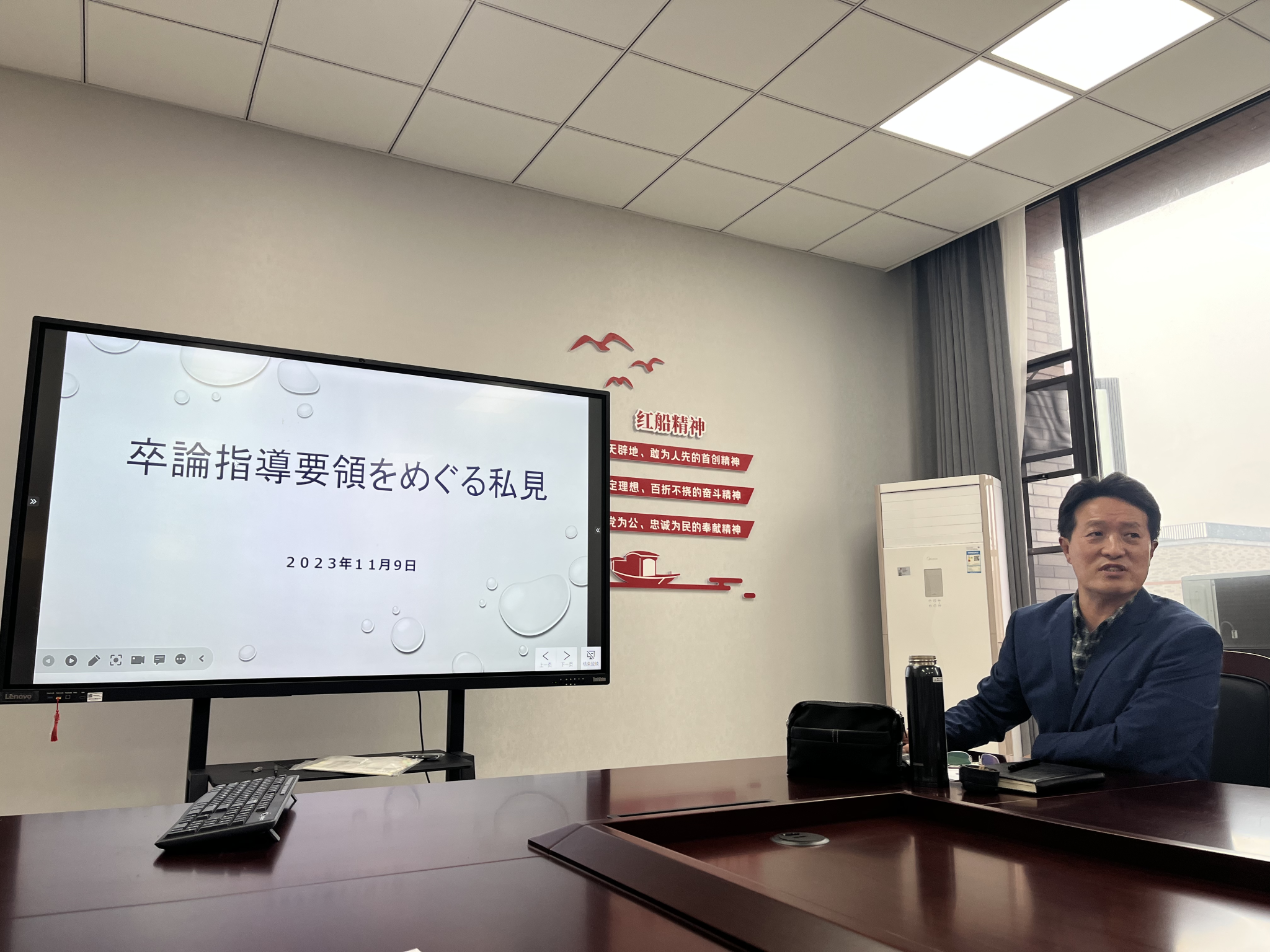 日语专业的实践教学包括一般课程实践教学、专业综合实践教学、集中实践教学和素质拓展四个环节。毕业论文是构成集中实践教学的一个重要内容,是拷问学生综合语言运用能力的一堂大课,也是专业水平的一个重要标识。为了把好毕业论文质量关,日语专业请多年来承担《日文论文写作》教学任务的专业负责人郭永恩老师分享了毕业论文指导心得,郭永恩老师做了题为“我的论文指导心得”课程教学交流。