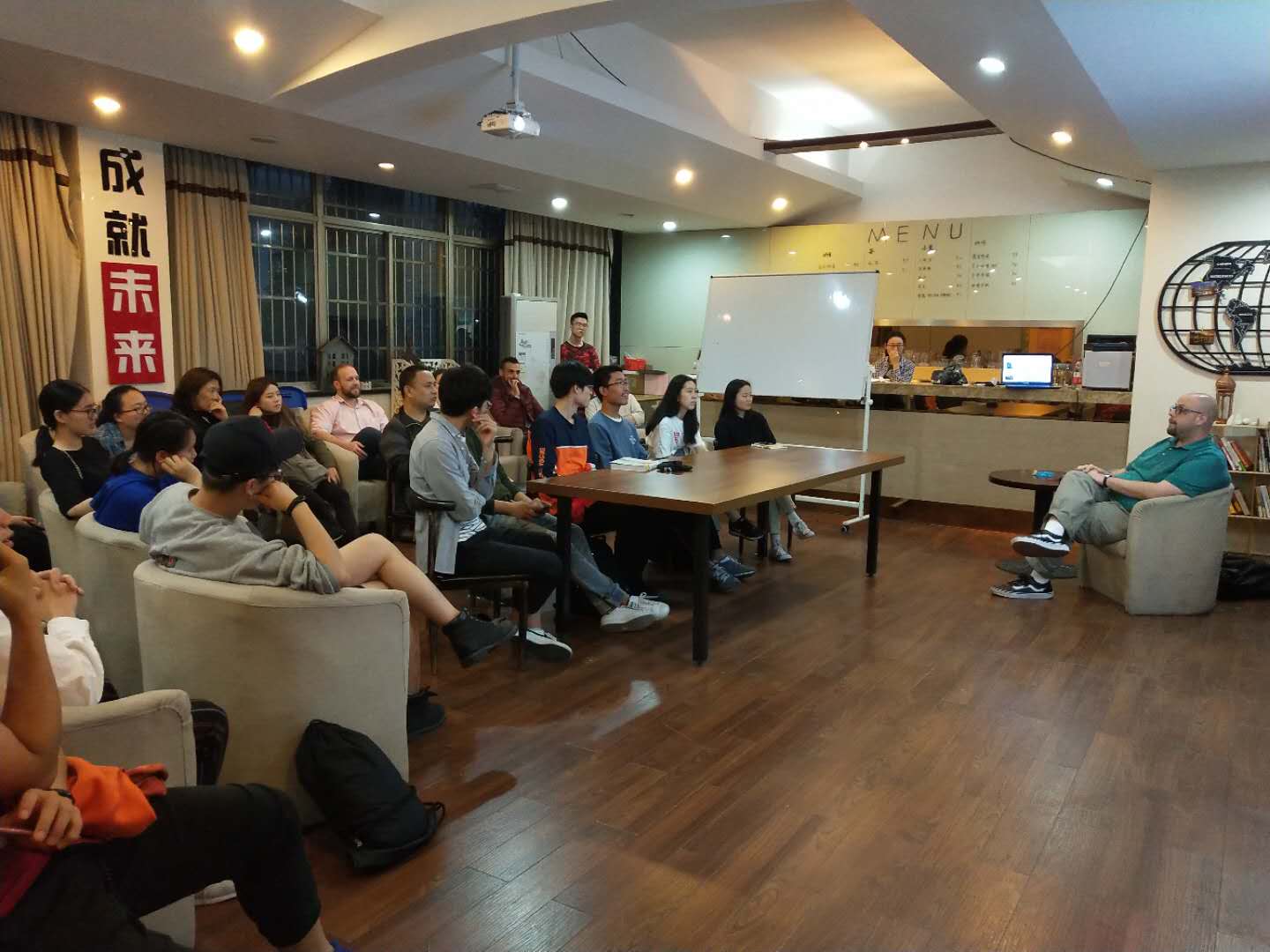 2019年4月18日,本学期第一次中外教沙龙在beat365在线唯一官网咖啡吧举行。沙龙主题为Video Game Culture in America(美国游戏文化),主讲人为美籍外教Nathan Tomey。