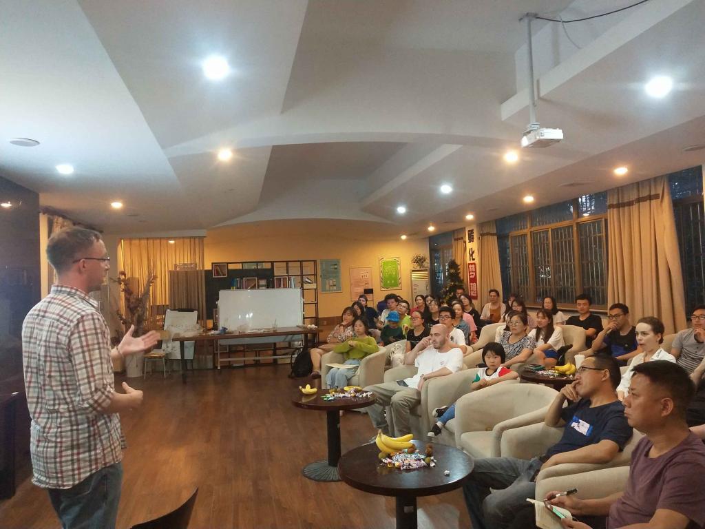 2019年6月5日,嘉兴学院beat365在线唯一官网中外教沙龙活动在beat365在线唯一官网咖啡吧如期举行。此次沙龙的主题是《外籍教师与中国的短暂邂逅与长久友谊》,主讲人为美籍外教Peter。Peter可谓是嘉兴学院外籍教师中的元老级人物,如今已是他在嘉院的第七个年头,而且嘉院也是他在中国的唯一教学单位,可见其对嘉院的情有独钟。由于各种原因,Peter下学期将回美国工作,因此此次可谓是他的告别沙龙,很多喜欢Peter的师生都慕名前来。沙龙现场咖啡吧里座无虚席,气氛活跃,他从自己以及外教们来中国的各种缘由谈起,讲到了在中国的各种见闻趣事,文化休克现象,对学院专业建设和外籍教师的教学管理提出了很多建设性的宝贵意见。他将自己七年的教学与生活娓娓道来,声情并茂,极具感染力。尤其是当他表达了对嘉兴、嘉院以及嘉院师生们的深厚感情,称嘉兴为自己的第二故乡时,现场师生都十分感动,纷纷表达了自己对Peter的喜爱。长达三小时的演讲结束时,师生们依然是兴致勃勃,意犹未尽。