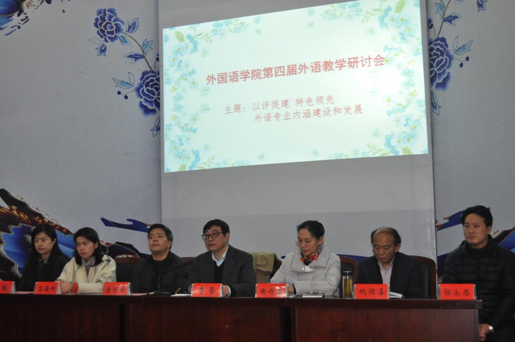 之后,李蕾处长又对外语专业建设提出要求和希望。他强调专业建设要与学校人才培养目标定位相结合,依据市场需求,朝应用型、复合型和交叉型方向发展;既要结合国家专业质量标准要求,又要通过人才培养目标、课程体系设置、学科竞赛等领域凝练专业特色,要利用好多媒体、大数据在外语教学改革中的积极作用,培养出符合社会需求、有长远发展潜力的高水平专业人才。李蕾还特别指出,学科竞赛是教学实践的重要内容,同时也是反映人才培养质量的一项重要指标,教师应充分发挥竞赛指导作用,以赛促练,以赛促改,以赛促学。最后,他希望外语教师与时俱进,重视外语教学新理念新发展,加强交流,抓住机遇,做实教学教改实践,为2018年审核性评估提交一份漂亮答卷。