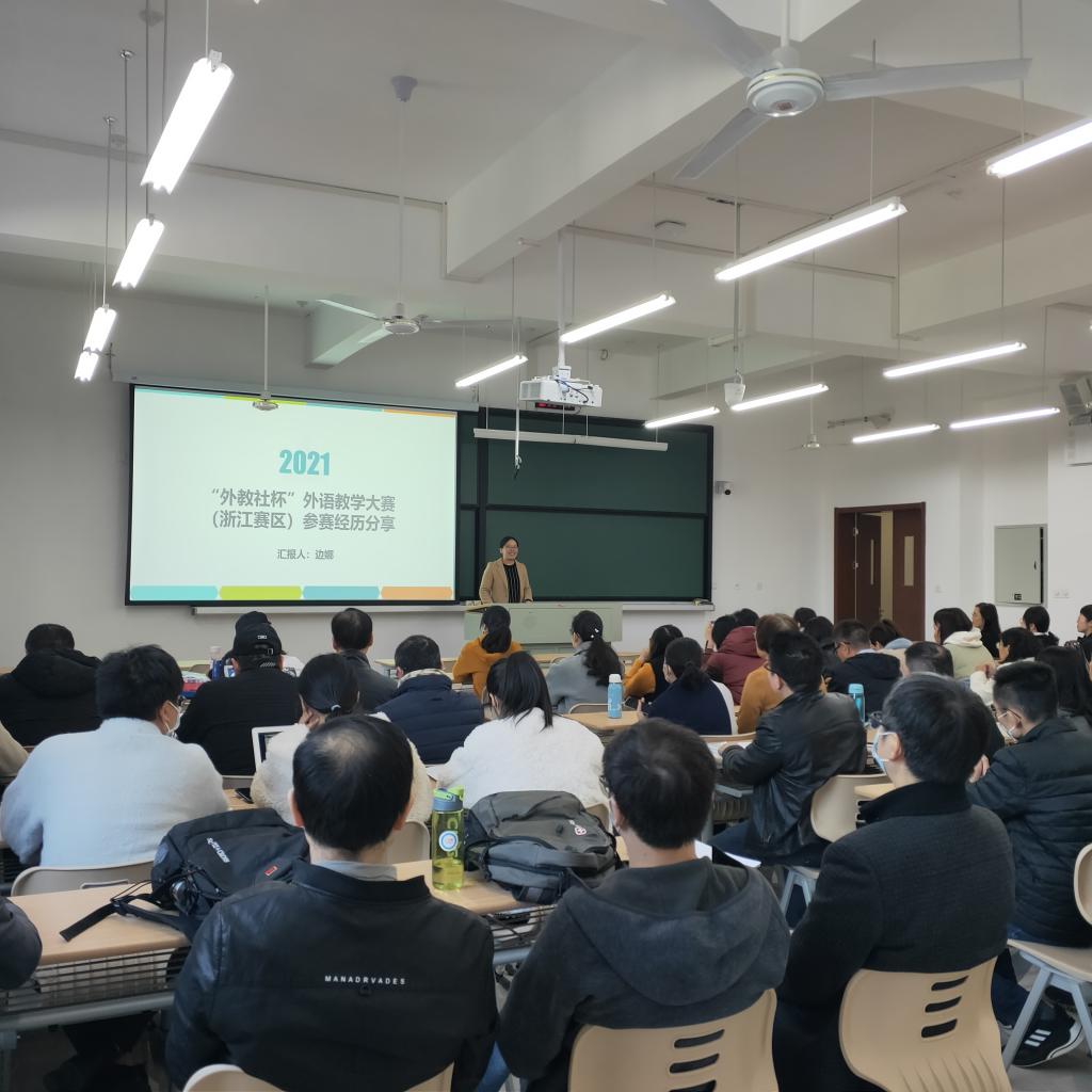 11月11日下午,beat365在线唯一官网集中听课评课系列活动继续开展。本次活动特别邀请外教社杯全国外语教学大赛浙江省决赛一等奖获得者边娜老师示范获奖课程,分享教学经验。beat365在线唯一官网全体教师现场观摩了边老师示范课程。