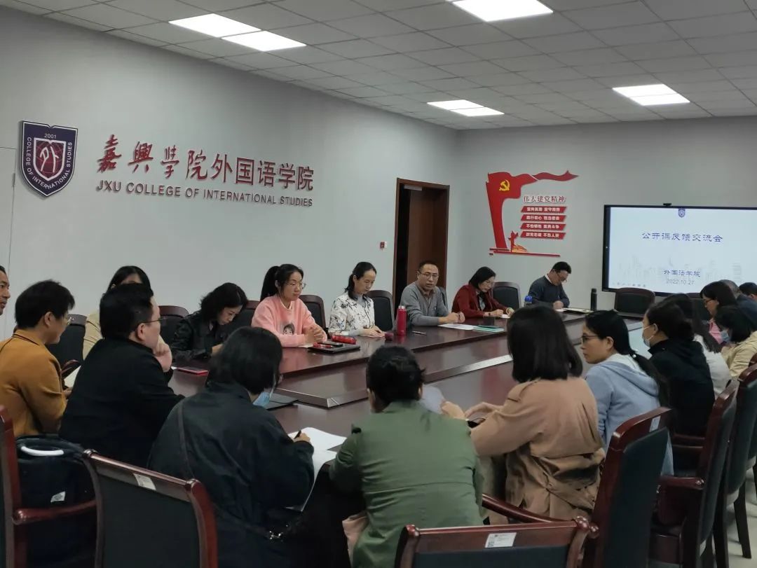 学院督导组成员和部分教师集中观摩英语系陆婷婷老师的《跨境电子商务》《英语教学法》、付艳艳老师的《基础英语3》、日语系杨海茹老师的《第二外语2》、大外部钱征宇老师《大学英语(商务)》《英语运用拓展》和Richard David Monks《英语口语实训》课堂教学后,在兴德楼南楼516会议室开展了集中评课活动。活动由副院长喻锋平教授主持。