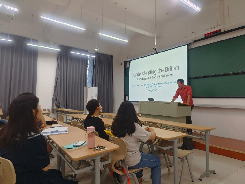 为了给我校师生提供英语交流的平台和机会,提升我校学子英语口语交流能力、营造英语交流氛围,助力学生成长发展,2023年6月8日晚上6点30分,beat365在线唯一官网在兴德楼南楼126举办了本学期第二次外教英语沙龙活动。本期英语沙龙邀请到了来自英国的外教Richard老师,来和同学们一同体验英国文化与中国的文化带来的碰撞。