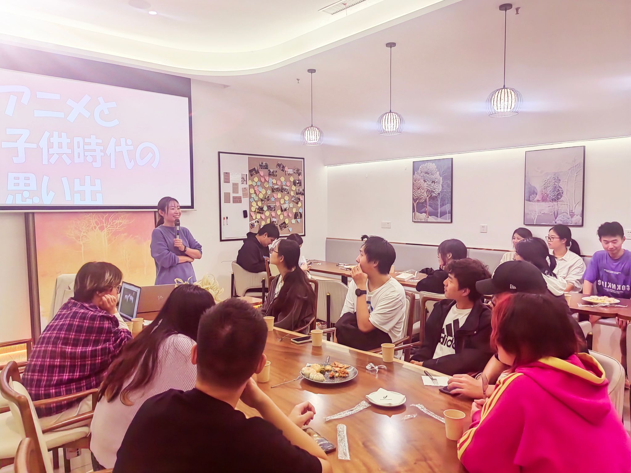 大家分享了关于追番、模仿角色、与小伙伴讨论剧情的趣事,以及在动漫中获得的成长感悟。这一环节中,参与者们用日语交流彼此的童年回忆,增进了语言学习的趣味性和互动性。