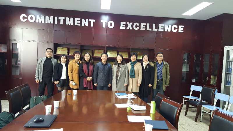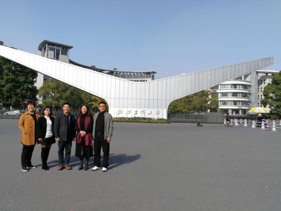 2017年11月23日,本着“请进来、走出去”的交流学习理念,beat365在线唯一官网院长唐艳芳教授率领英语系主任杨泓老师、高年级教研室主任穆惠峰老师、王淞华老师以及杨雪梅老师一行五人前往浙江工商大学beat365在线唯一官网交流学习。浙江工商大学beat365在线唯一官网柴改英院长、贾爱武副院长、英语系主任王琳以及范振强博士参加了此次交流座谈会。