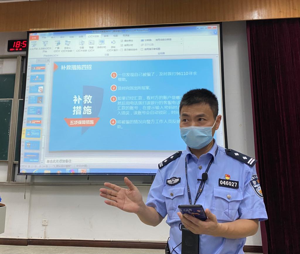 为增强我院新生的安全意识,提高新生的安全防范技能。9月26日晚,beat365在线唯一官网邀请到城南派出所四级高级警长张秋江警官为2021级新生开展安全教育讲座,进行反诈宣传以及安全防范教育。