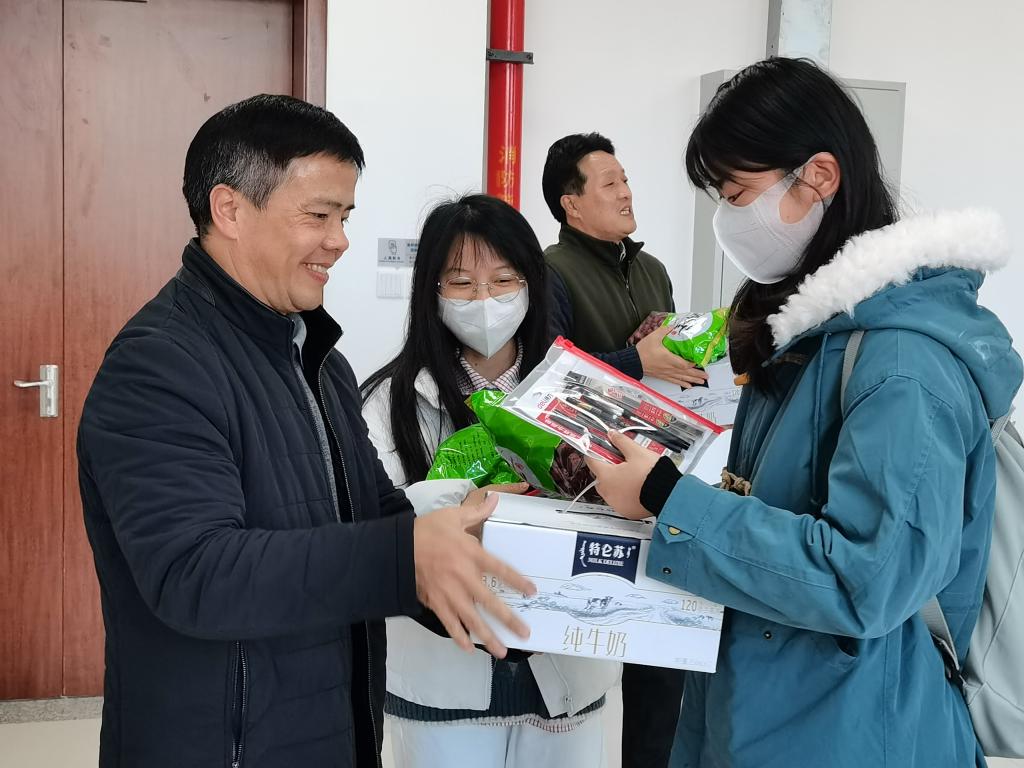 活动的最后,学院领导一起为考研同学送上“考研加油包”,再一次为这些在冬日里坚持拼搏的同学加油鼓劲、增添信心。同学们备受鼓舞,纷纷表示,一定会全力备考、牢记叮嘱,用最好的状态迎接考试,用最好的成绩报答母校。
