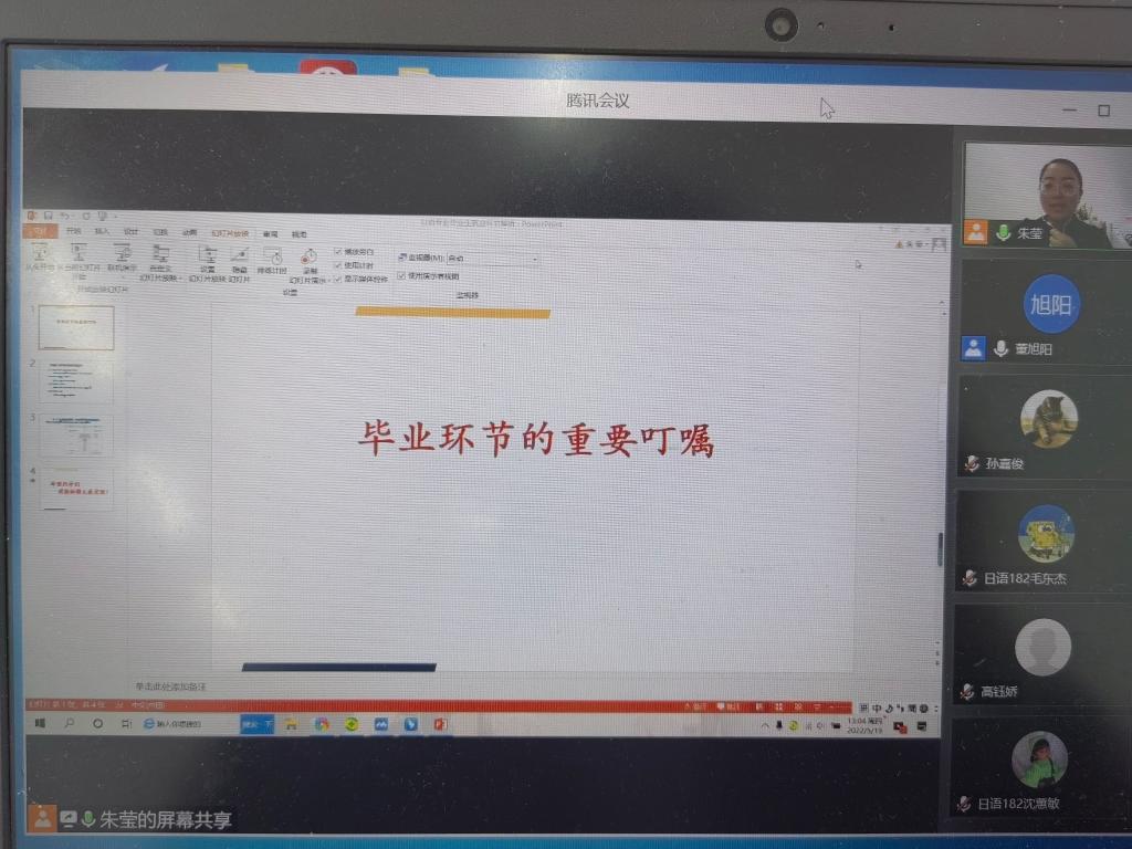 2022年5月19日,学院利用学生开展毕业实习答辩工作的机会,围绕“毕业环节的重要叮嘱”主题为全体毕业生开展了一场线上毕业和就业指导推进工作会议。学院党委副书记朱莹根据学生的发展需求,对学生就业和职业生涯规划进行了分类指导,督促他们尽快落实工作单位,为进入社会做好充分的准备。