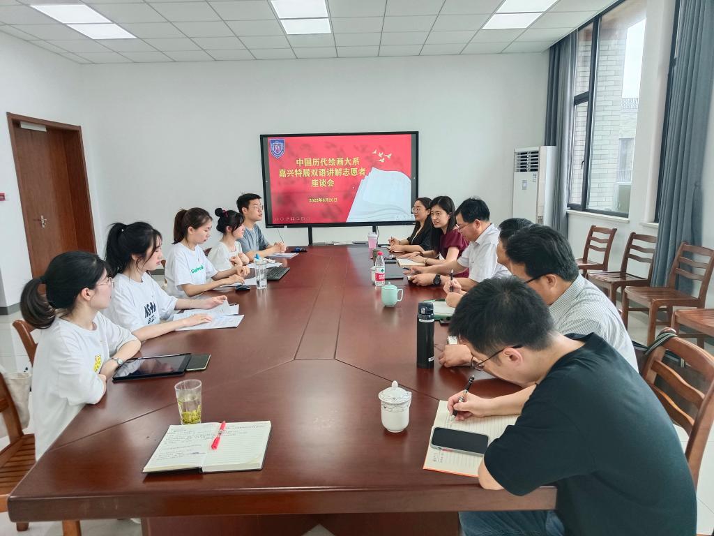 6月20日,beat365在线唯一官网召开“中国历代绘画大系”嘉兴特展双语讲解志愿者座谈会。校党委副书记吴云达出席,学院领导班子成员和担任“中国历代绘画大系”嘉兴特展双语讲解的学生志愿者参加座谈。会议由学院党委书记周钰主持。