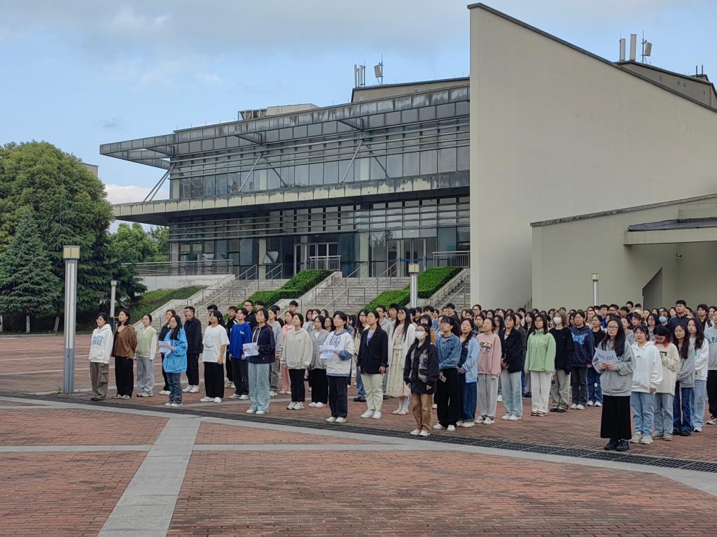 为纪念“五四”青年节74周年,回顾过去、展望未来,5月8日早晨,beat365在线唯一官网在梁林校区一期学生活动中心广场举行本学期第一次升旗仪式。参加本次升旗仪式的有思政辅导员吴琳轩老师以及2021级、2022级全体同学。本次升旗仪式由吴欣莹同学主持。