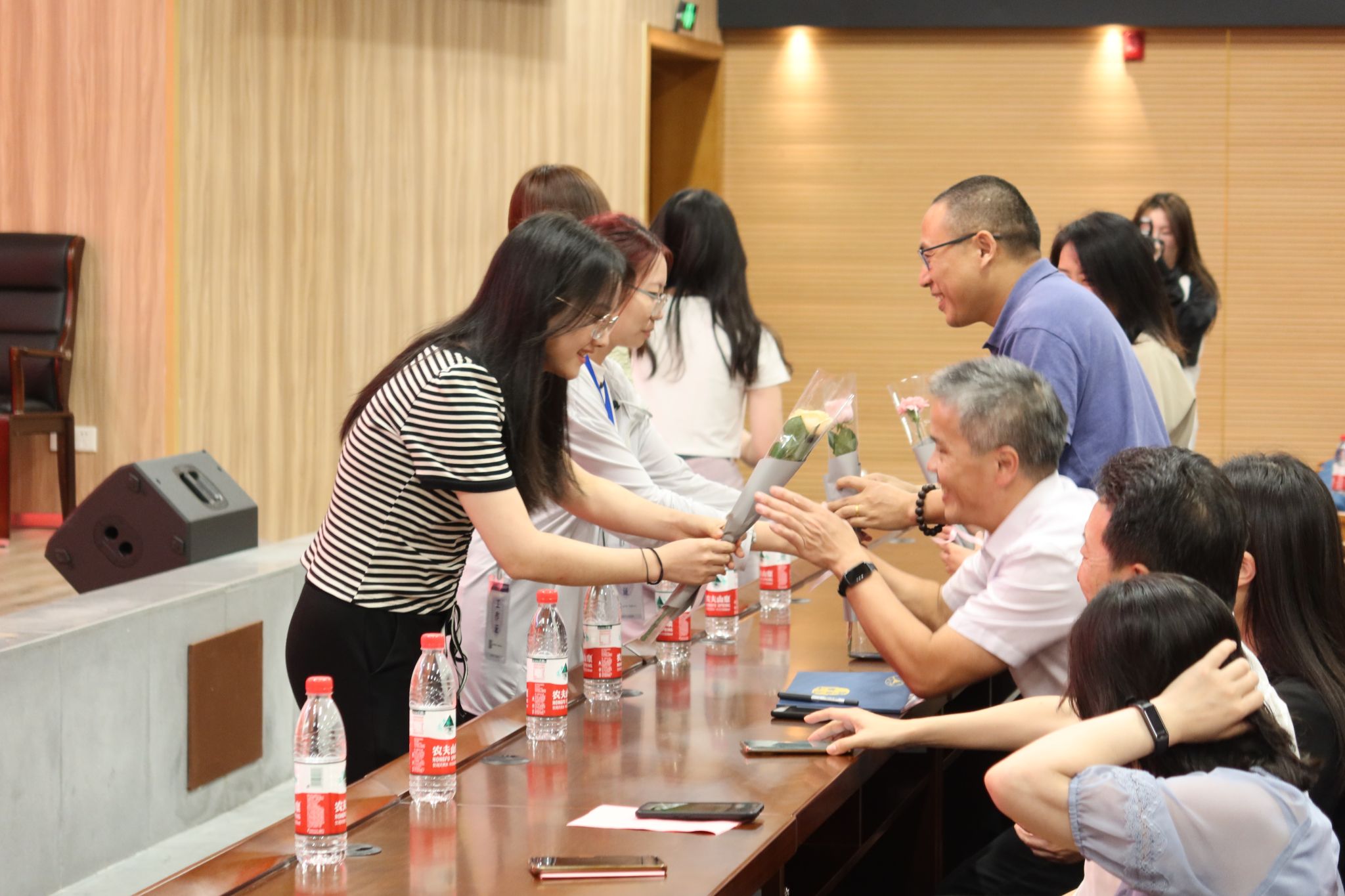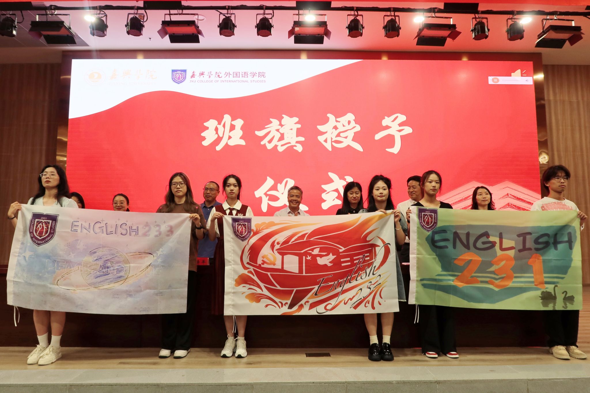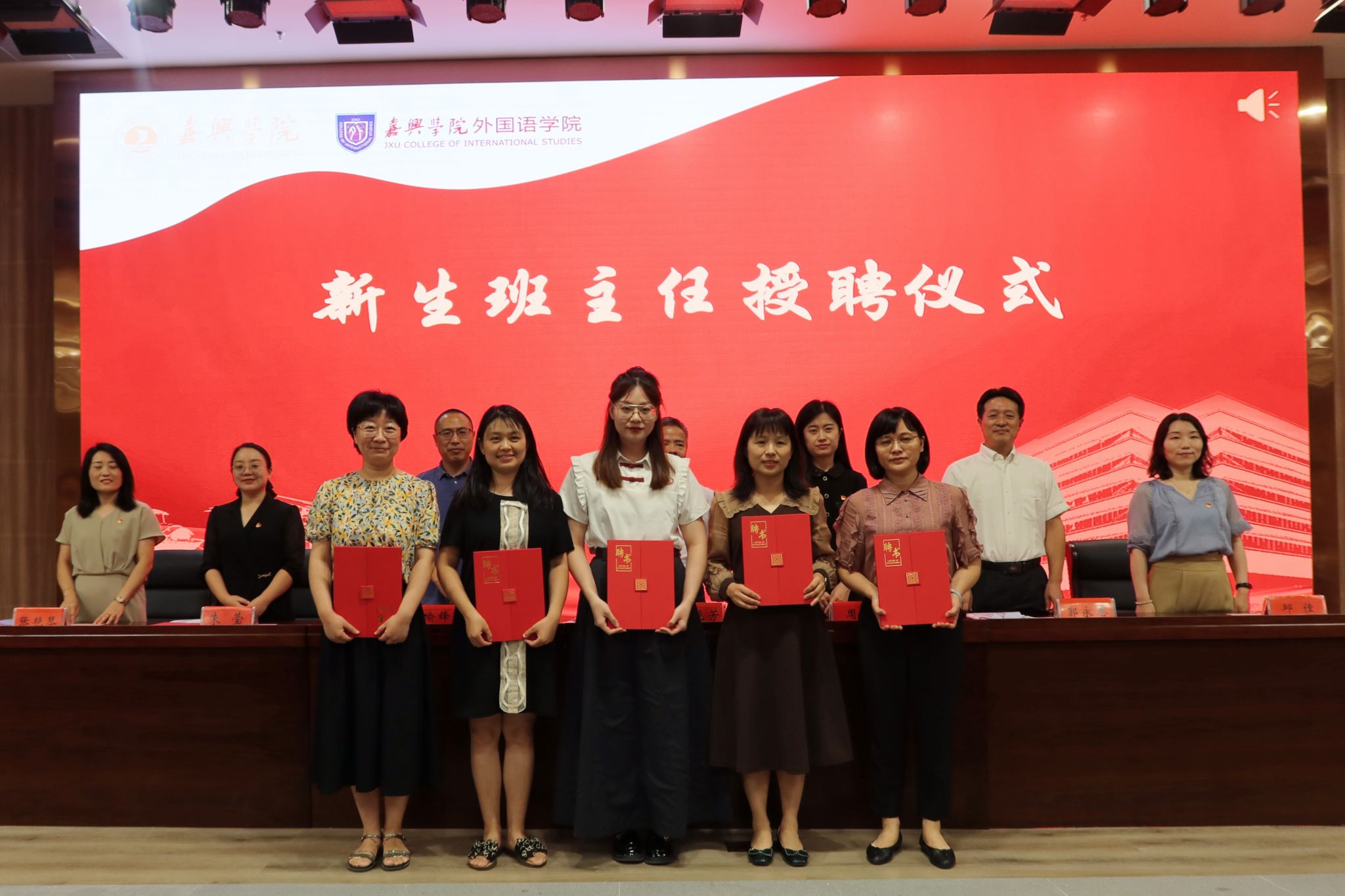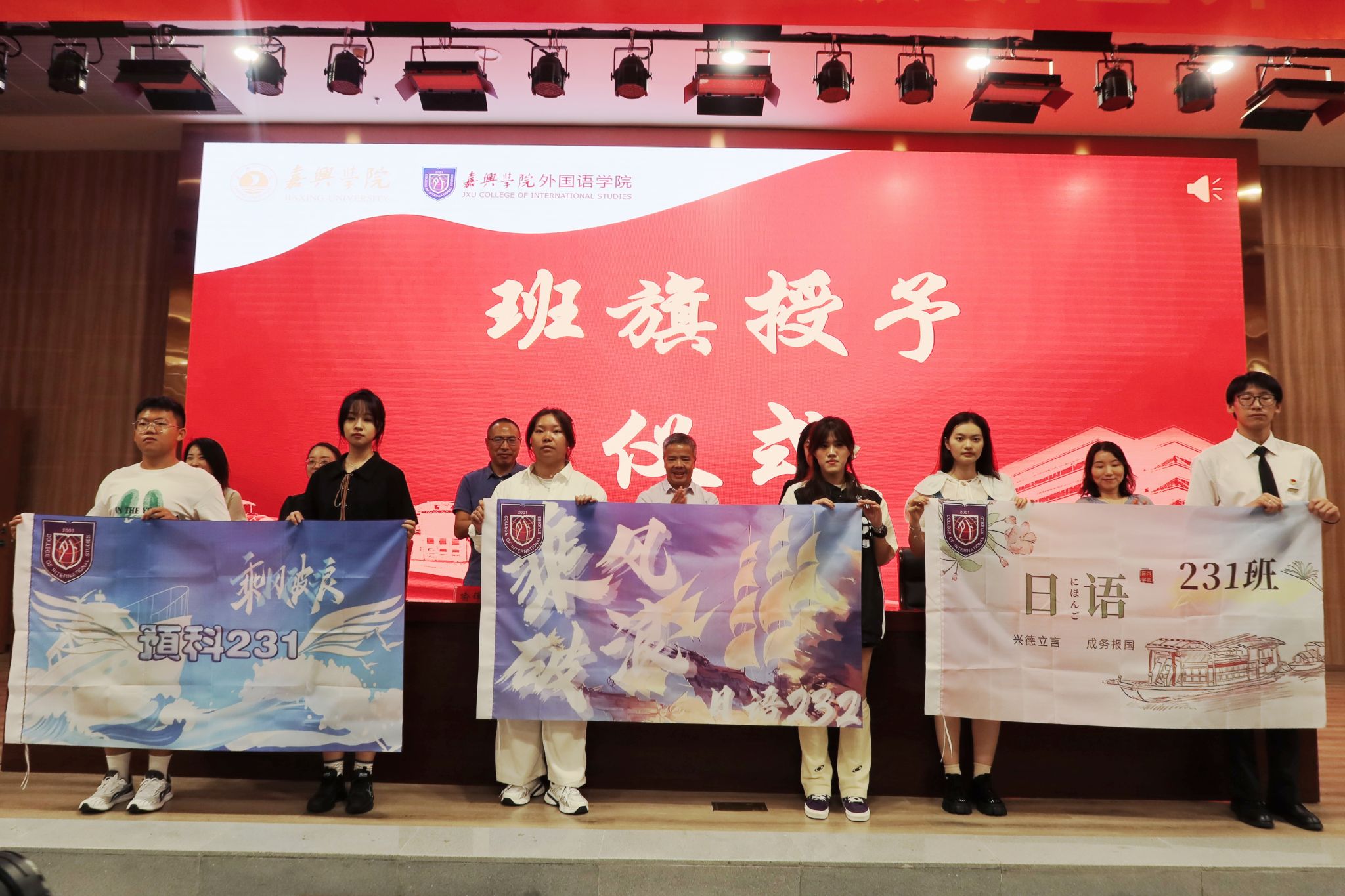 典礼现场,学院党政领导班子为新生班班主任颁发聘书并为新生班级授班旗。同学们向在场所有的老师们送上了节日祝福,师生共同观看了迎新节目。