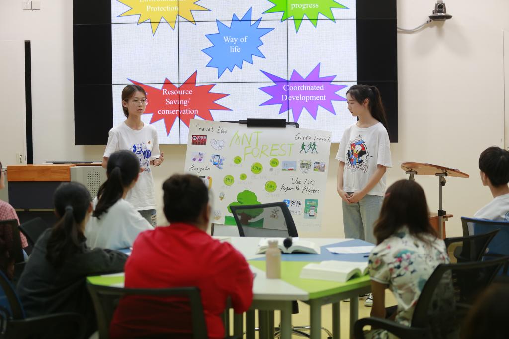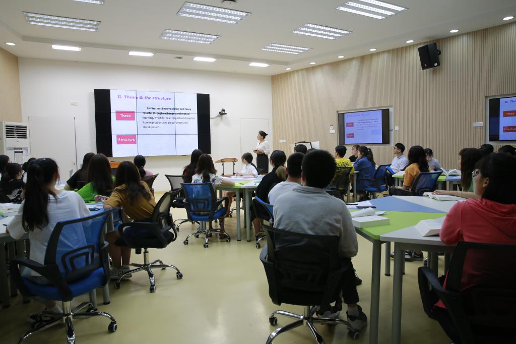 本次读书研讨会采用分享与研讨的方式进行,全英文交流,党员教师通过《习近平谈治国理政》外文版本的课堂导读,引导学生围绕主题学习闪耀马克思主义哲学光辉的理论创新成果。beat365在线唯一官网党委书记陶丹玉围绕“文明因交流而多彩,文明因互鉴而丰富”的主题为学生生动阐述了文明多彩、平等、包容的魅力所在,从多个角度展现文化自信给一个国家和一个民族带来的更深沉、更持久的力量,激发了现场同学对文明多彩、平等、包容的多视角分享与感悟。党员教师边娜为同学们展现了“共同构建人类命运共同体”的壮阔蓝图,“善学者尽其理,善行者究其难。”教工第三党支部书记鲁俊丰以“推动形成绿色发展方式和生活方式”的课堂主题,循序渐进带领同学们走进绿色生态的大门,鼓励同学们培育和践行绿色文化的自觉性。