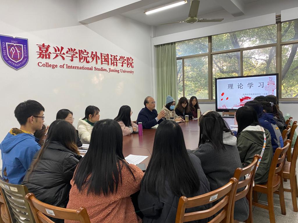 2020年12月4日下午3点半,嘉兴学院beat365在线唯一官网英语学生第一党支部在嘉兴学院越秀校区外语楼204会议室开展了支部的理论学习会。本次学习会由支部书记胡笳丽主持,联系英语学生第一党支部的校领导杨培强副校长、英语一支部党员和入党积极分子参加学习会。