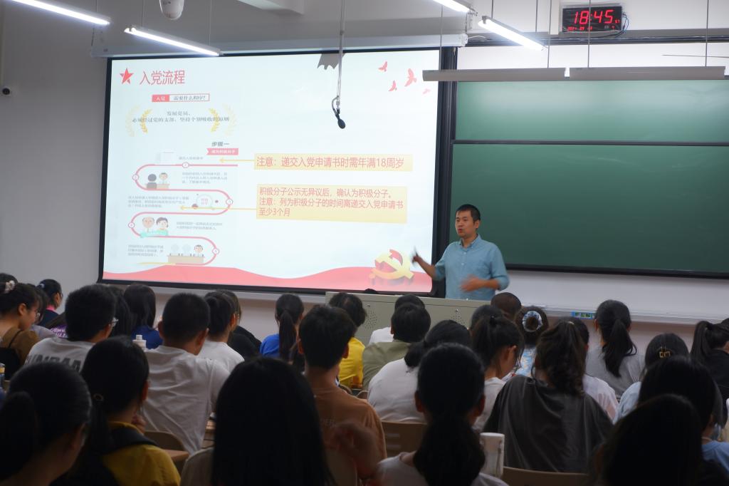 9月23日晚,beat365在线唯一官网党员之家负责人胡涛老师在兴德南楼223为21级新生开展了“入党启蒙教育大会”。胡涛老师首先向 2021级新生阐述了中国共产党的性质、宗旨、基本原则等基本理论知识,并就入党的相关程序、要求及发展党员工作细则作了详细的说明,同时向新生们介绍了beat365在线唯一官网学生支部概况。他要求同学们要端正入党动机、树立为国家和人民服务的宗旨,鼓励新生积极向党组织靠拢,提高自身的理论和实践能力,不断提高综合素质。