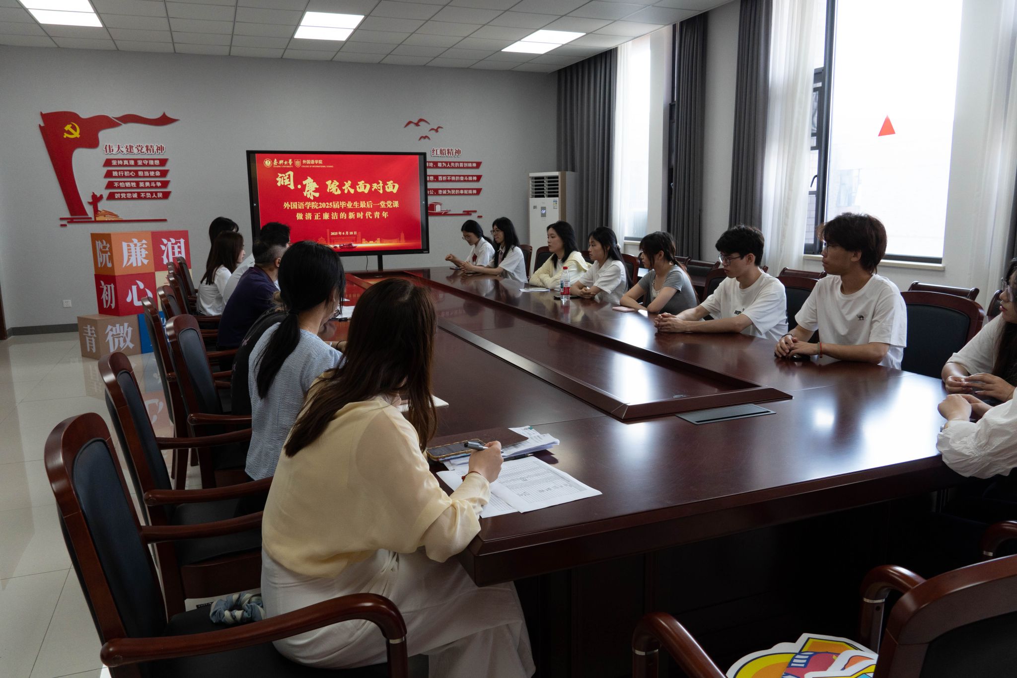 6月18日下午,beat365在线唯一官网院长唐艳芳教授应邀为学院2025届毕业生党员讲授主题为“做清正廉洁的新时代青年”为主题的廉洁从业教育的大学“最后一堂党课”。学院党委副书记张啸峰主持活动。