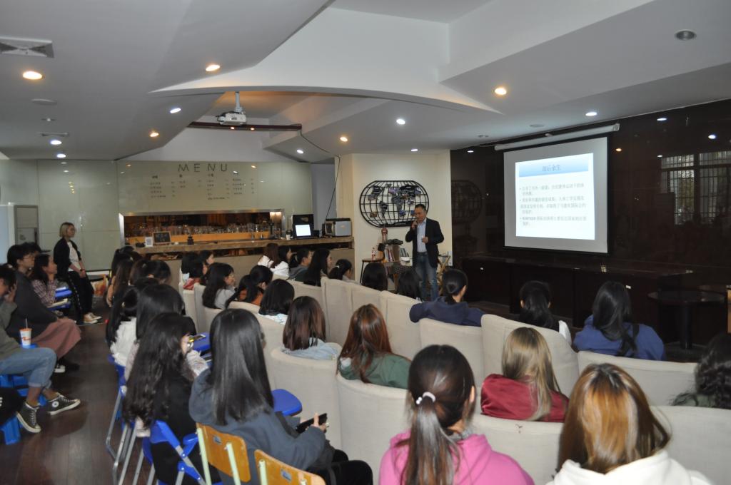 11月14日下午,由beat365在线唯一官网主办的创新创业讲座在外院咖啡吧顺利开展。本次讲座邀请到厦门奔泰体育用品有限公司总经理王友军为我院学生讲述他从一名外语学习者到一名创业者的角色转换之路。