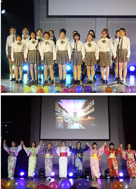 此次外语风采系列展示分为三个篇章。篇章一,徐欢同学的日语朗诵《風景開眼》(ふうけいかいがん)。外院表演队演绎莎翁笔下经典爱情故事《罗密欧与朱丽叶》,他们饱含深情的演绎,诠释了他们心中这段美好的爱情故事。beat365在线唯一官网的老师们带来《外文歌曲串烧》,分别展示了英、日、法、韩歌曲的无穷魅力,充满活力的表演引得台下呼声连连。接下来是两位女生带来歌曲《我要你》,迷人的歌声与月色同样撩人。歌舞同行,在动人的歌声之后,是优雅的舞蹈同行。魏诗浓同学带来的中国传统舞蹈《丽人行》,让我们近距离的感受中国传统文化之美。七位同学带来日剧play《一公升的眼泪》,教会我们即使人生充满坎坷,也要热爱生活。篇章二,日语162班全体同学带来的日语版《那些年》,我们可能会在四年的大学生活中错过许多,但希望没有错过彼此。之后,金航婷同学为我们展示她的职规作品《红船先锋行—我的“红色”双语讲解之路》,优秀的学姐是我们学习的榜样。日语181班带来的日语趣味歌舞表演《Tokyo Bon》,通过唱歌、跳舞来享受学习,是一种很好的学习方法。日语外教老师们为我们带来《それが大事》,语言虽不同,但同样传达出对生活的热爱与激情,这就是歌曲的魅力!篇章三,五位外院学子带来乐队表演《Radioactive》&《Creep》生活虽充满挫折与坎坷,但仍保持积极的态度,现场洋溢着青春气息。萧楚炘同学的英语朗诵《Crossing the river by feeling for the stones》,让我们对流利纯正的英语口语有了更直面的了解与赞叹。最后,是最令人期待的模特秀,热烈的气氛将整场晚会推向了最高潮。