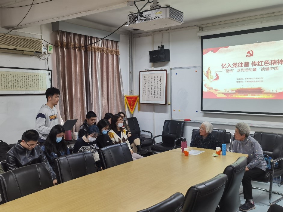 薪火相传,继往开来。时值中国共产党建党100周年之际,为教育引导广大青年学生爱党、爱国、爱社会主义,充分发挥“五老”亲历者、见证者、实践者的优势,扎实开展党史、新中国史、改革开放史、社会主义发展史等历史教育,beat365英国官网、非洲学院本科生、研究生党支部应关工委关于开展“读懂中国”活动的指示,于2021年4月2日开展“忆入党往昔,传红色精神”——“星传”系列活动暨“读懂中国”活动。活动由本科生党支部预备党员丁一洺主持。