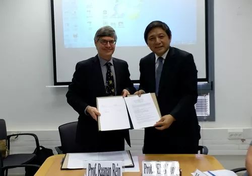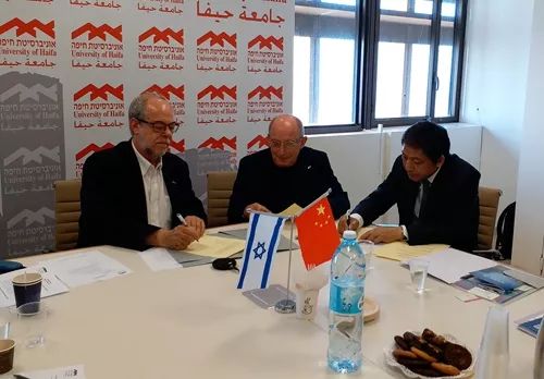之后,彭龙一行访问了以色列海法大学,与该校两位正校长罗恩•鲁宾(Ron Rubin)与古斯塔沃•马什(Gustavo Mash)就加强北外的以色列与中东地区研究交换了意见,并签署了《合作谅解备忘录》。参与会谈的还有该校国际学院院长,经济管理学院院长以及中东研究中心、阿拉伯语系、希伯来语教学中心、犹太研究及以色列研究项目负责人等。双方就希伯来语教学与人才培养、中东与伊斯兰教研究、商科人才联合培养等方面进行了详细商讨,并初步确定了相关合作方案。会谈后,两校签署《合作谅解备忘录》。