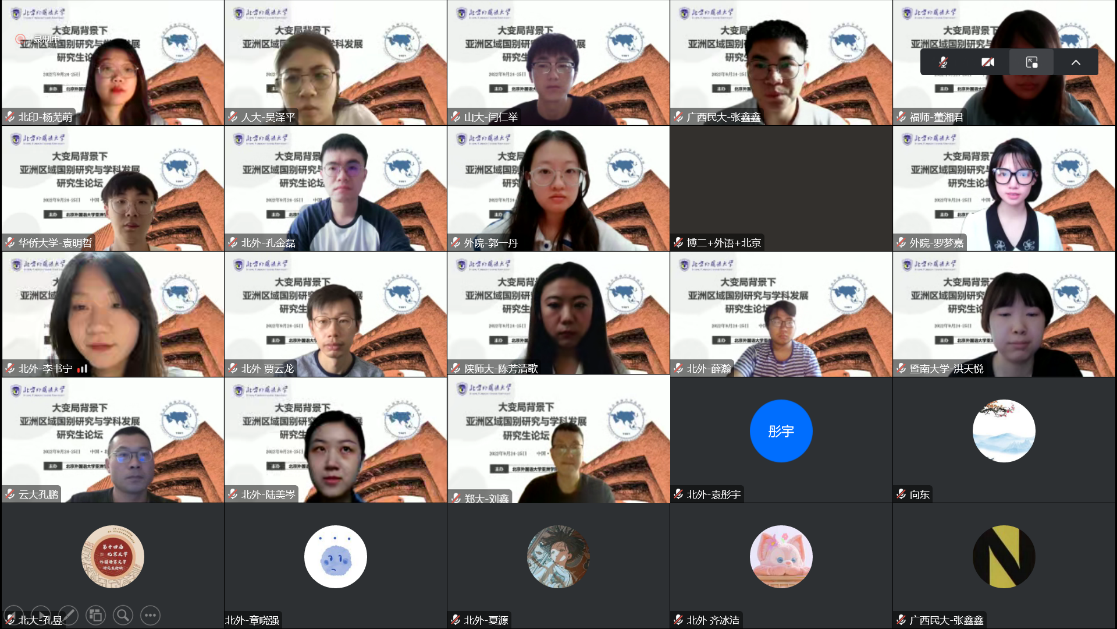 2022年9月24至25日,“大变局背景下亚洲区域国别研究与学科发展”研究生论坛在beat365英国官网如期举行。本次论坛采取线上形式,分为东北亚研究、东南亚研究、南亚研究以及其他领域研究三个模块,共收到来自国内外31所知名高校和科研院所共57位研究生的投稿,专家组最终评选出32篇优秀论文参与此次论坛。