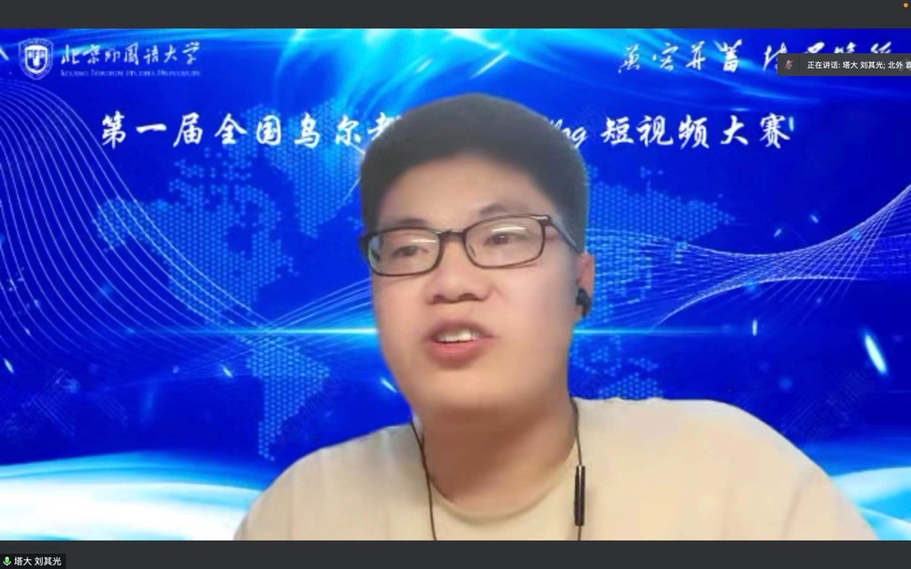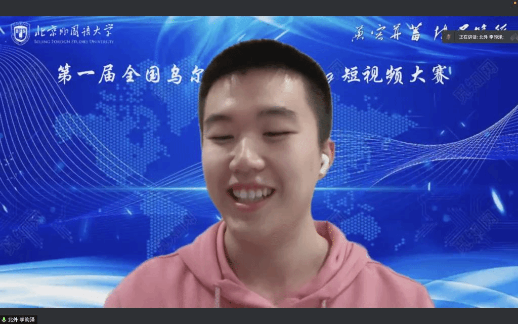 11月23日晚,第一届全国乌尔都语专业Vlog短视频大赛颁奖典礼于线上成功举办。本次大赛由beat365英国官网乌尔都语教研室主办,中国南亚语种学会支持,共收到来自beat365英国官网、北京大学、广东外语外贸大学、西安外国语大学、云南民族大学、新疆师范大学、江苏师范大学等多所院校提交的32份作品。经过激烈角逐,最终评选出涵盖高、低年级组的3组一等奖,5组二等奖和10组三等奖作品。