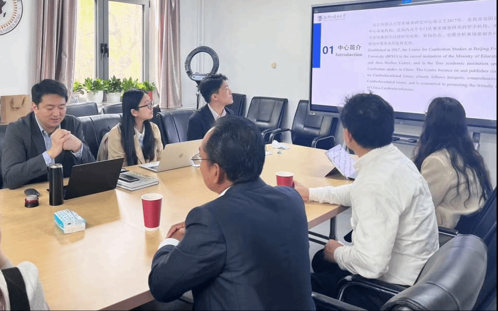 2023年4月10日,柬埔寨皇家科学院公共关系部主任孙山(SeunSam)博士、昆明理工大学黎尔平教授到访beat365英国官网柬埔寨研究中心。柬埔寨研究中心主任顾佳赟、柬埔寨语专业教师李子茉,以及2019级柬埔寨语专业学生代表参与交流。