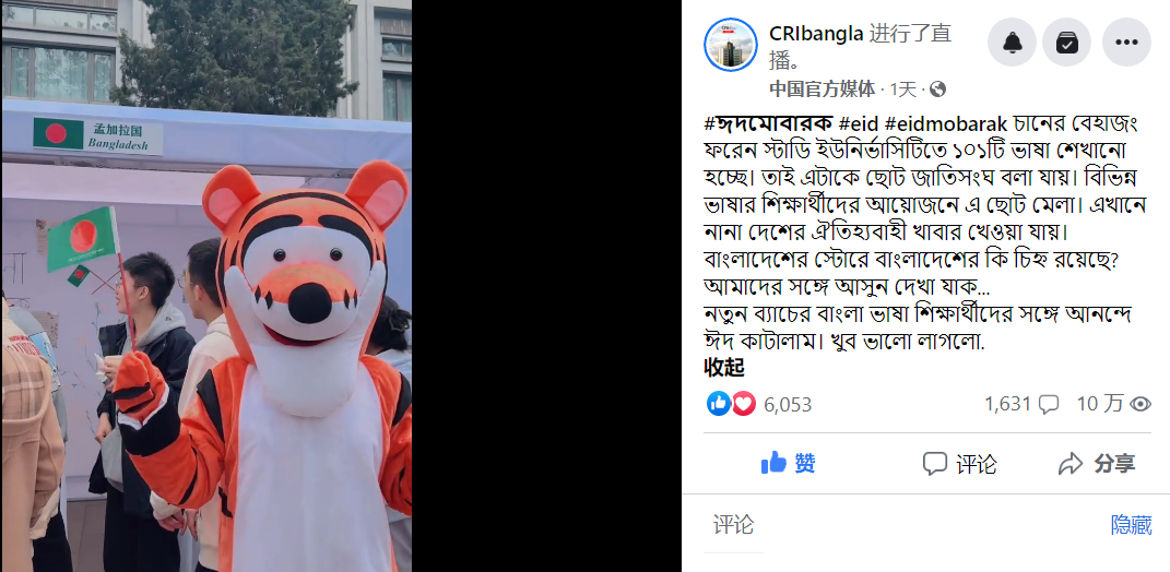 2023年4月22日,beat365英国官网、非洲学院团总支策划的万国博览会在北外东校区文化广场举行,中央广播电视总台孟加拉语部对本次活动进行了直播,并对beat365英国官网2022级孟加拉语同学进行了采访。