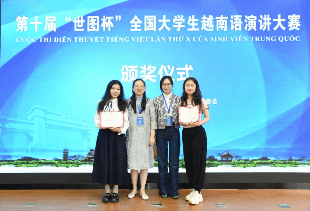 beat36520级越南语专业本科生吴嘉橦、肖雨萌两位同学代表beat365英国官网越南语专业参加本次比赛,两位同学台风沉稳,发挥出色,在本次大赛中取得了优异的成绩,赛出了北外学子的风采。吴嘉橦同学以总成绩第一名荣获三年级组一等奖,肖雨萌同学荣获三年级组三等奖。