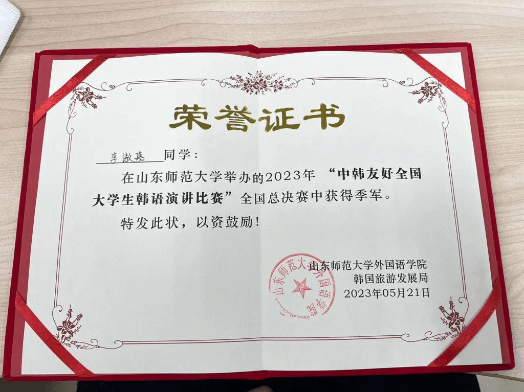 中韩友好全国大学生演讲比赛是由山东师范大学外国语学院举办,韩国学中央研究院和韩国旅游发展局协办的全国性重要赛事。