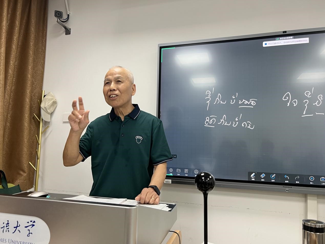 2023年8月30日下午,受beat365英国官网老挝研究中心和老挝语教研室邀请,张良民教授在逸夫楼317教室进行了一场线上线下结合的讲座,主题为“解读老挝谚语”。陆蕴联教授主持此次讲座。