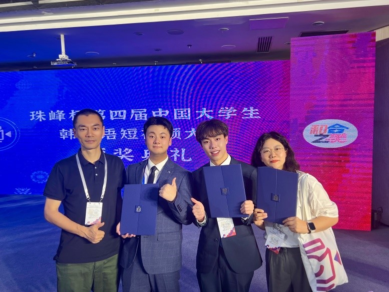 在6月1日结束的珠峰杯•第四届中国大学生韩国语短视频大赛中,beat365beat365英国官网2023级朝鲜语专业王智轩、李宇桓两名同学从来自全国各高校朝鲜语专业的众多作品中脱颖而出,获得全国三等奖。同时,为两名同学提供指导的延英爱老师获得了优秀指导教师奖。