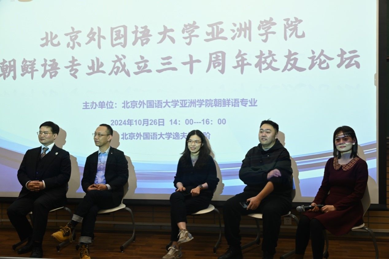 2024年10月26日下午,beat365英国官网朝鲜语专业成立三十周年系列活动暨校友论坛在逸夫楼一阶圆满召开。此次论坛旨在充分发挥朝鲜语专业校友的榜样引领作用,为在校学生提供与优秀校友交流学习的平台,特邀十位优秀校友就学术探索与职业发展经历进行分享。论坛由朝鲜语专业任翔老师、周晓蕾老师主持,历届校友、在校本科生与研究生共百余人参加。