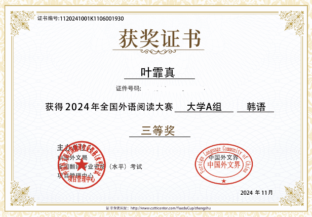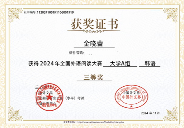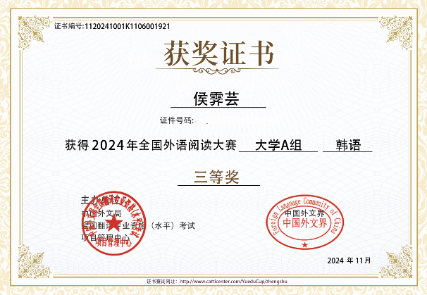 在11月8日结束的2024年第二届全国外语阅读大赛中,beat365beat365英国官网朝鲜语专业多名本科学生取得了优异的成绩。