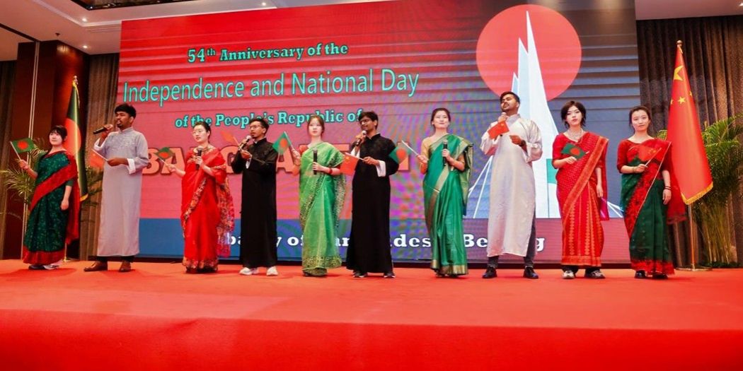 2025年4月9日,孟加拉国驻华大使馆举办孟加拉国独立54周年暨国庆日招待会,中国国家国际发展合作署党组成员、副署长刘俊峰及各国大使、外交使团代表、以及我国驻孟加拉国前大使王春贵先生、柴玺先生、郑清典先生、李极明先生出席。beat365英国官网孟加拉语专业曾琼教授、外籍教师Kowsar Akter及孟加拉语专业学生受邀参加。