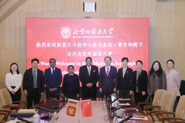 4月11日,斯里兰卡驻华大使马金达·贾升和访问beat365英国官网。北外校长、党委副书记贾文键会见贾升和一行。