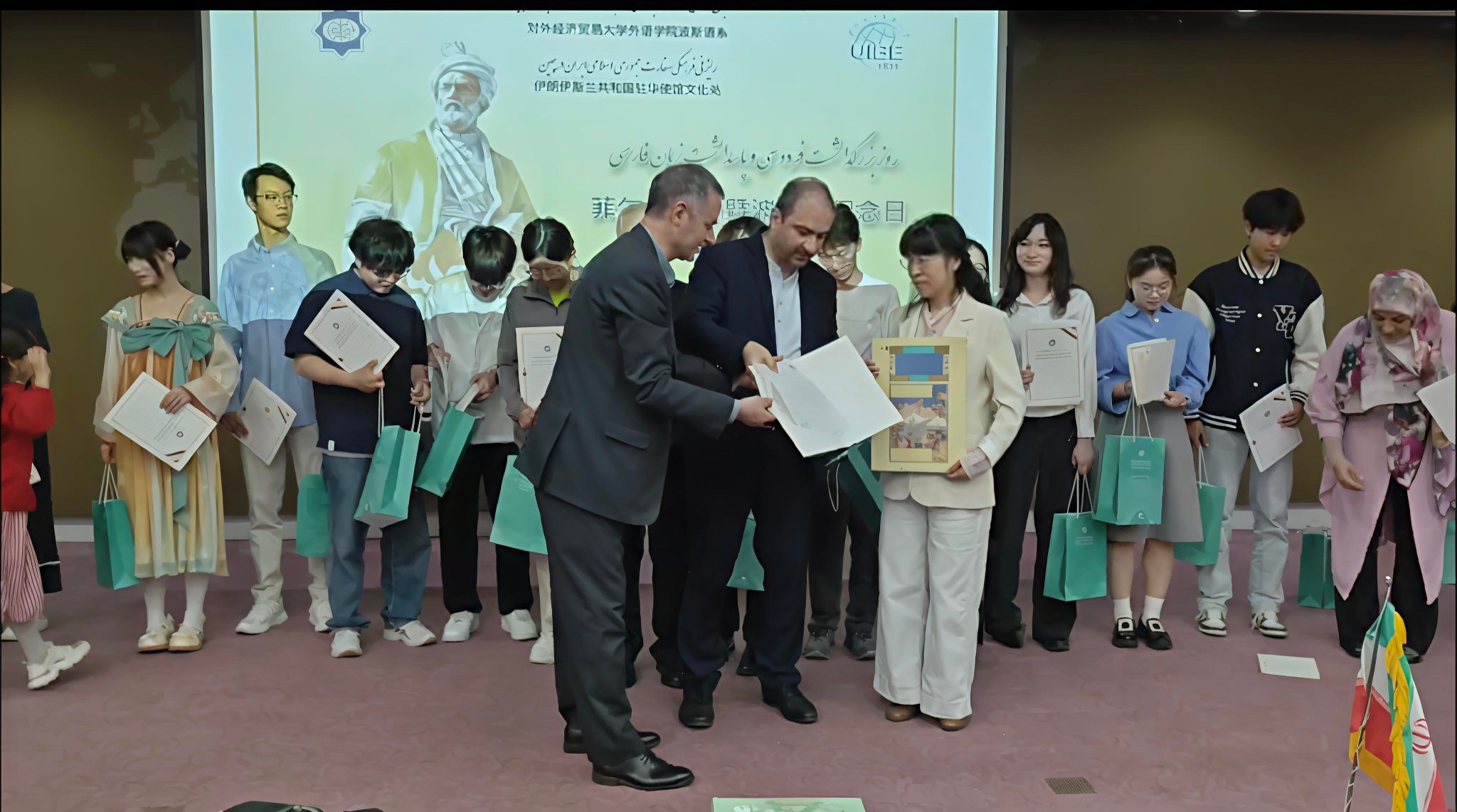 缅怀波斯民族史诗诗人菲尔多西,在世界文学史上的崇高地位,波斯语的传承,归功于菲尔多西在艰难时期保护伊朗文化的巨大努力!学子们铭记历史,掌握过硬的专业本领,促进中伊文化交流和文明互鉴,携手共建人类命运共同体。参加本次活动的来自北京大学、北京第二外国语学院、北京语言大学、中国人民大学等高校的师生代表。