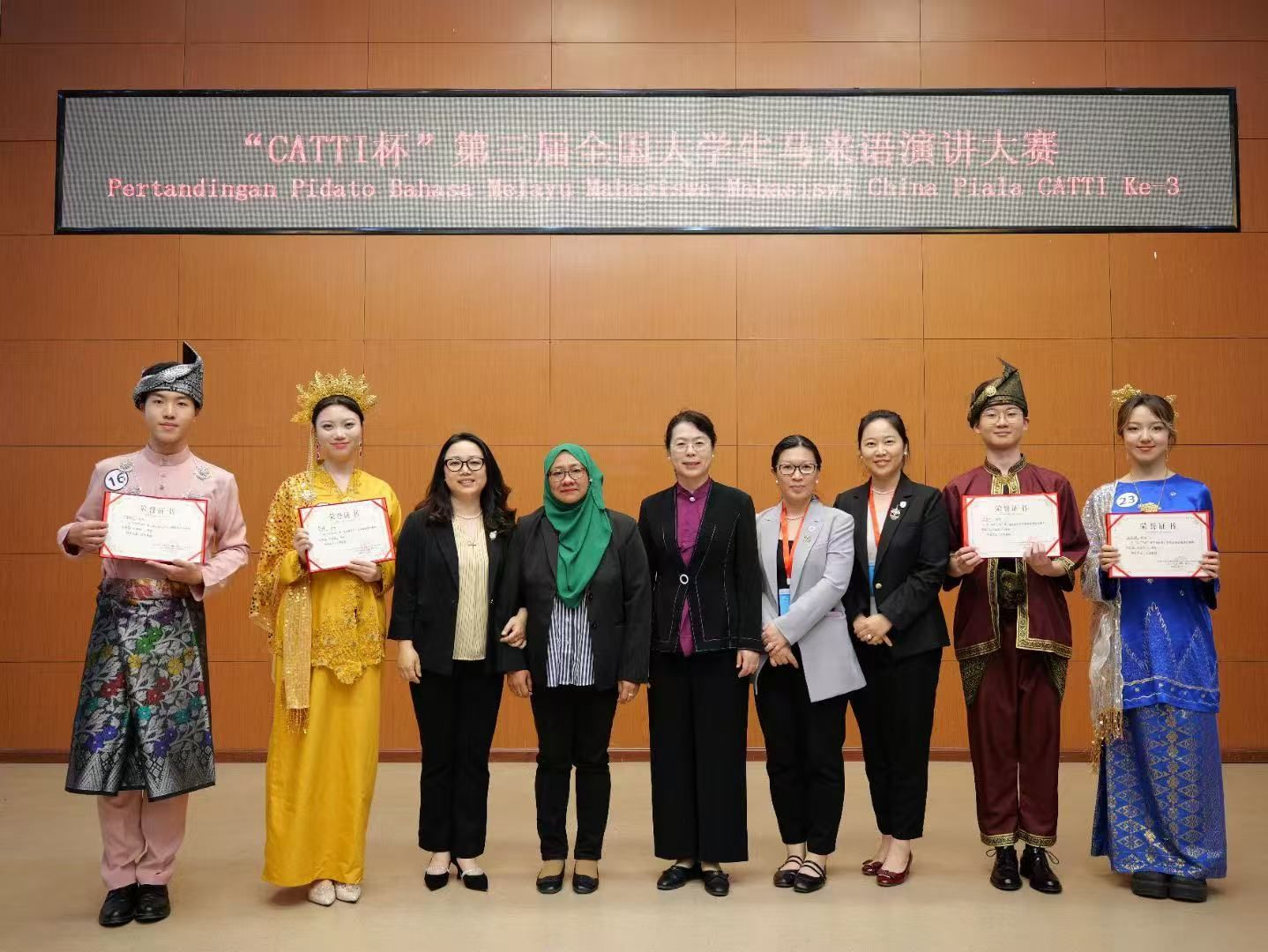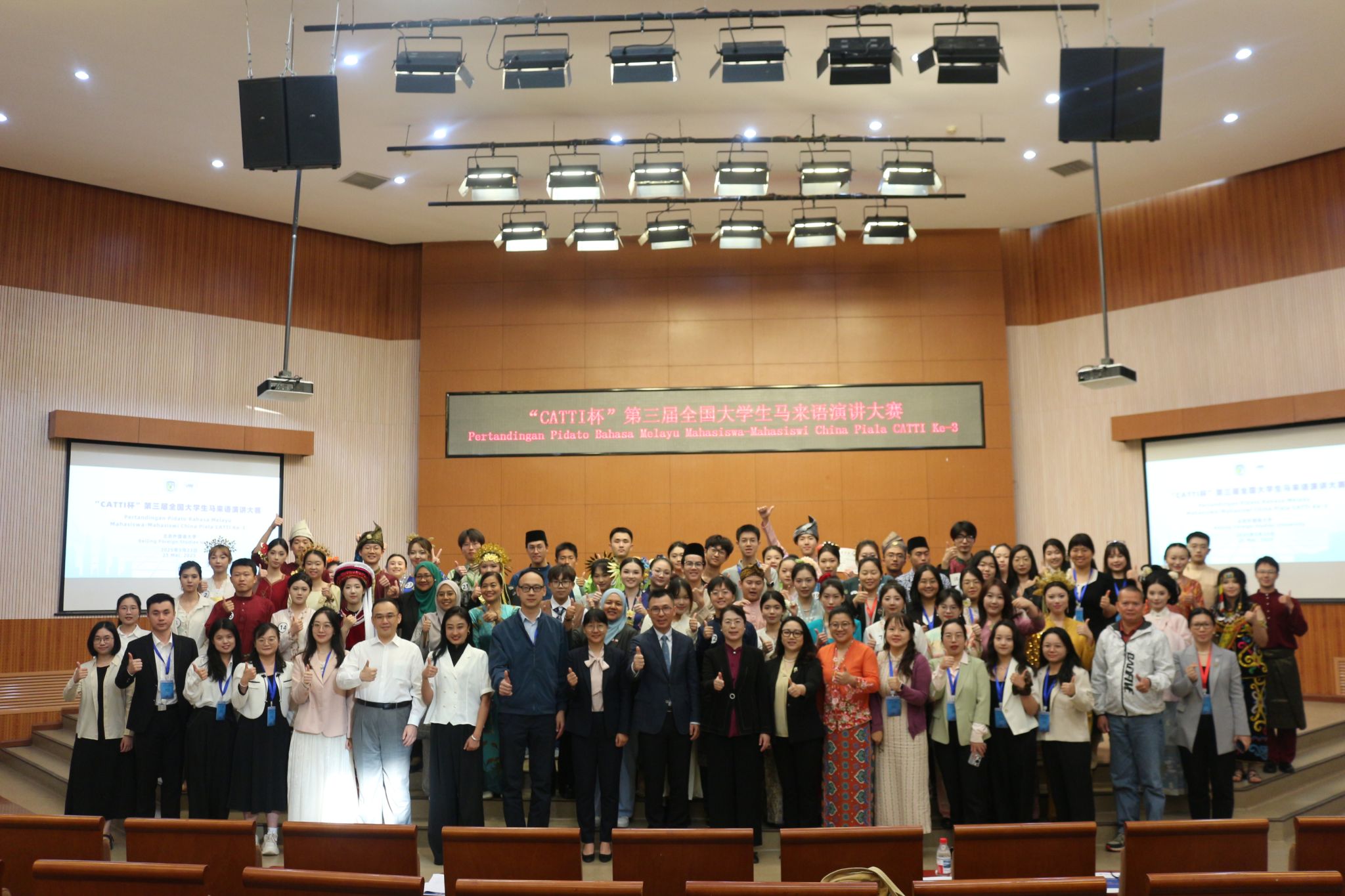2025年5月23日,“CATTI 杯”第三届全国大学生马来语演讲大赛在beat365英国官网成功举办。大赛由全国大学生马来语演讲大赛组委会主办,beat365英国官网承办,beat365英国官网、中国马来研究中心及中国外文局全国翻译专业资格(水平)考试项目管理中心协办,旨在促进全国高校马来语专业学生之间的交流与合作,提升学生的马来语口语表达和演讲能力。