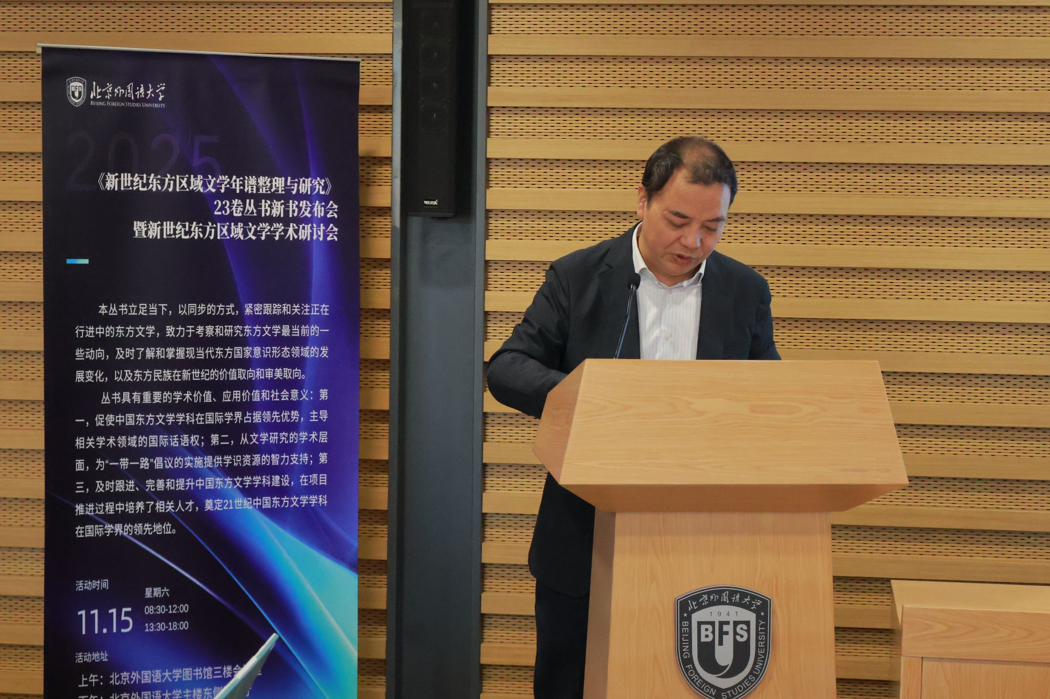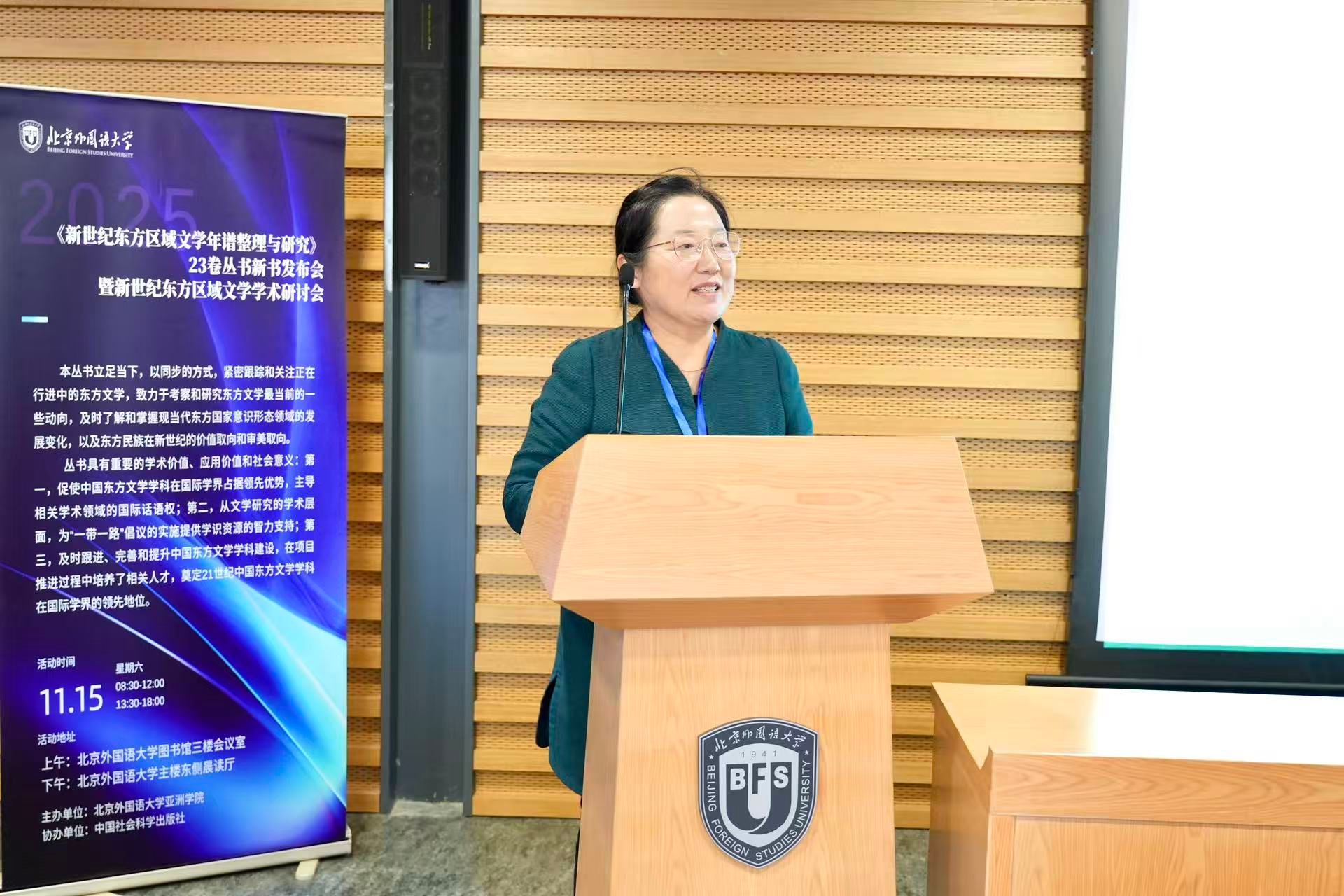 2025年11月15日,由beat365英国官网主办、中国社会科学出版社协办的“《新世纪东⽅区域⽂学年谱整理与研究2000-2020》23卷丛书新书发布会暨新世纪东方区域文学学术研讨会”在京召开。