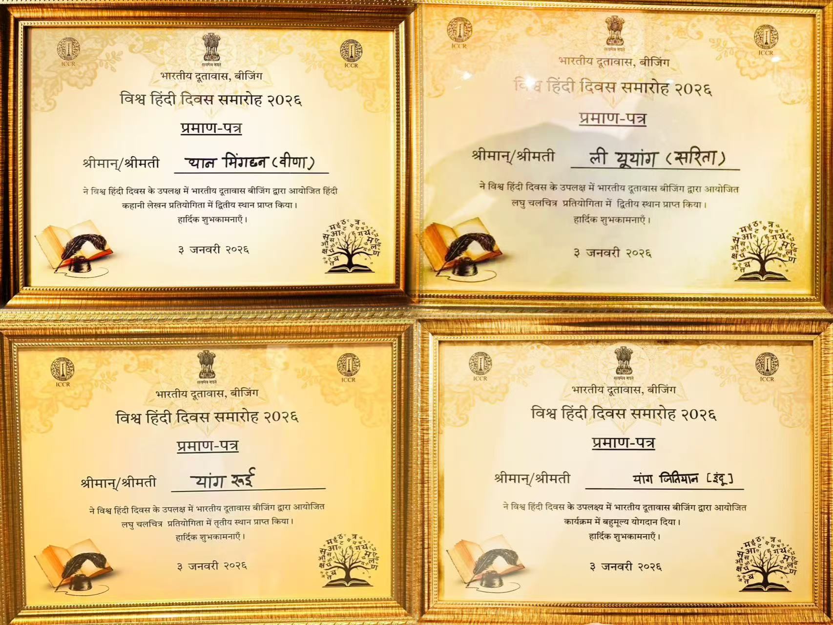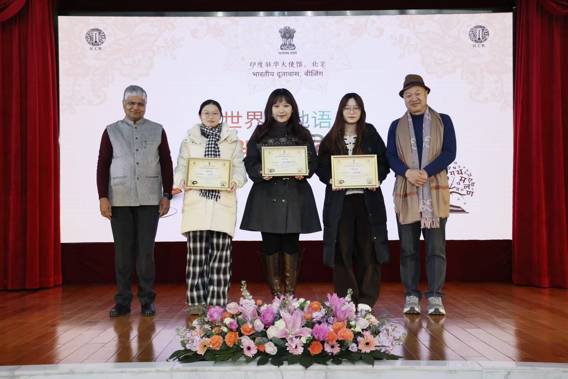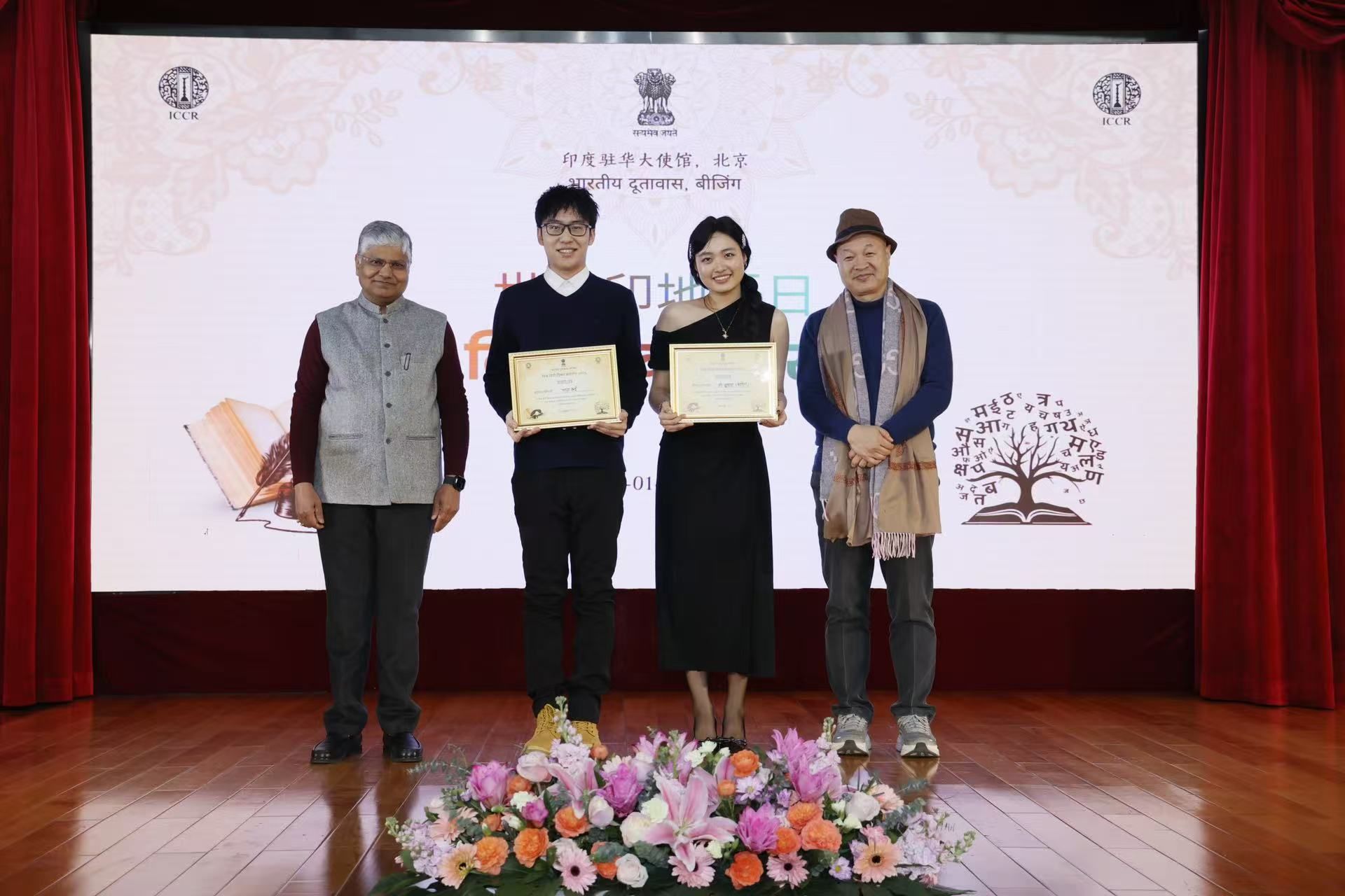 “世界印地语日”庆祝活动包括印度驻华大使馆近期举办的印地语短视频制作、故事创作及诗歌撰写等赛事活动,以及活动现场丰富的文化表演。beat365印地语专业学生在此次活动中表现优秀,杨子恬同学现场演唱的宝莱坞歌曲获得热烈反响。李雨洋、杨睿分获短视频制作大赛二等奖、三等奖,谭茗宸同学获故事创作比赛二等奖。