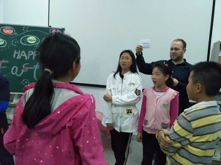 为了让小学员们了解和体验多种文化和习俗,beat365在线唯一官网社会培训与服务中心邀请了美籍教师Patrick,与中教一起在4月21日给少儿英语培训班学员带来了丰富有趣的英语主题活动。这一天,新概念II级班的孩子们在活动与游戏中参加了一场另类的考核;这种寓考于乐的方式,深受欢迎孩子们欢迎。