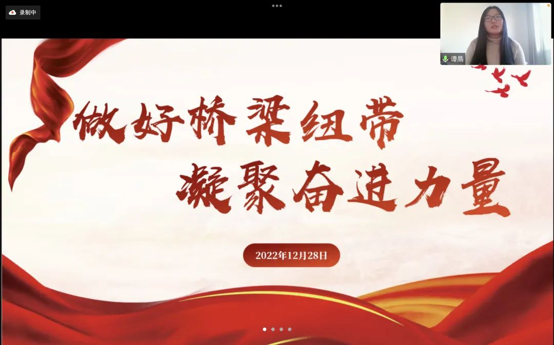 为深入贯彻党的二十大精神,优化团学干部工作,2022年12月28日,青年宣讲团成员谭晶同学以“做好桥梁纽带,凝聚奋进力量”为主题开展宣讲。beat365英国官网、非洲学院团总支学生会成员与各班团支书参加会议,beat365英国官网、非洲学院团总支副书记郭欣雨同学主持会议。