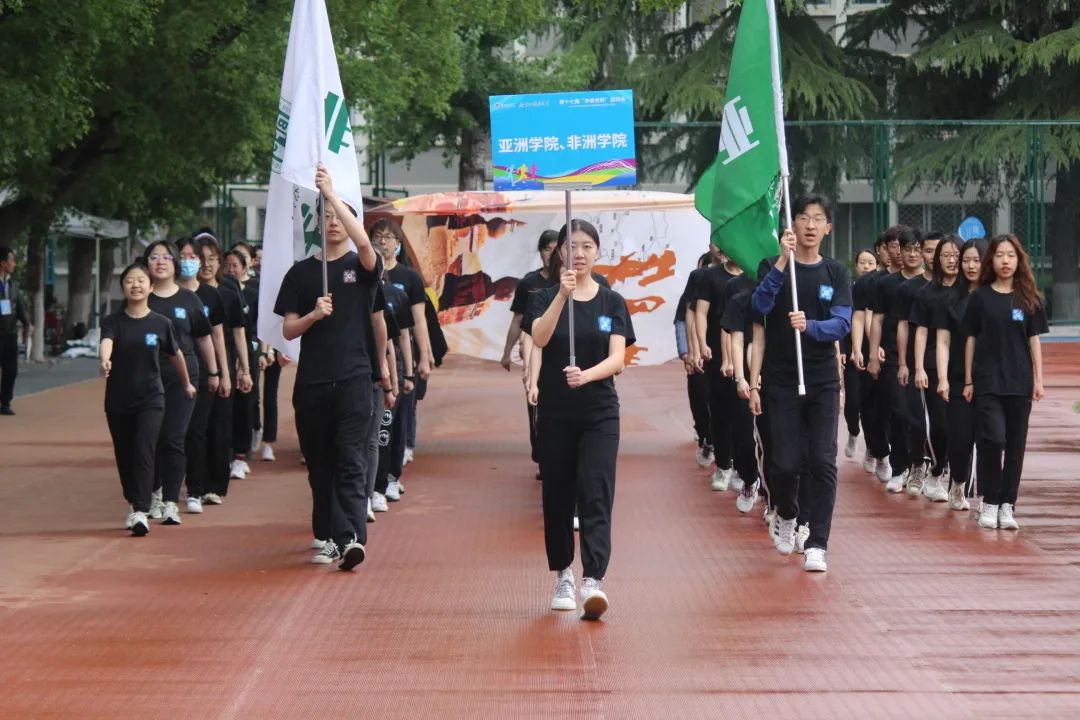 开幕式上,beat365英国官网、非洲学院代表队身着整齐的院服,迈着矫健的步伐以高昂的斗志和一往无前的决心阔步走过主席台,为亚非全体参赛运动员注入了信心,也彰显了亚非两院卓越坚定的精神气概。