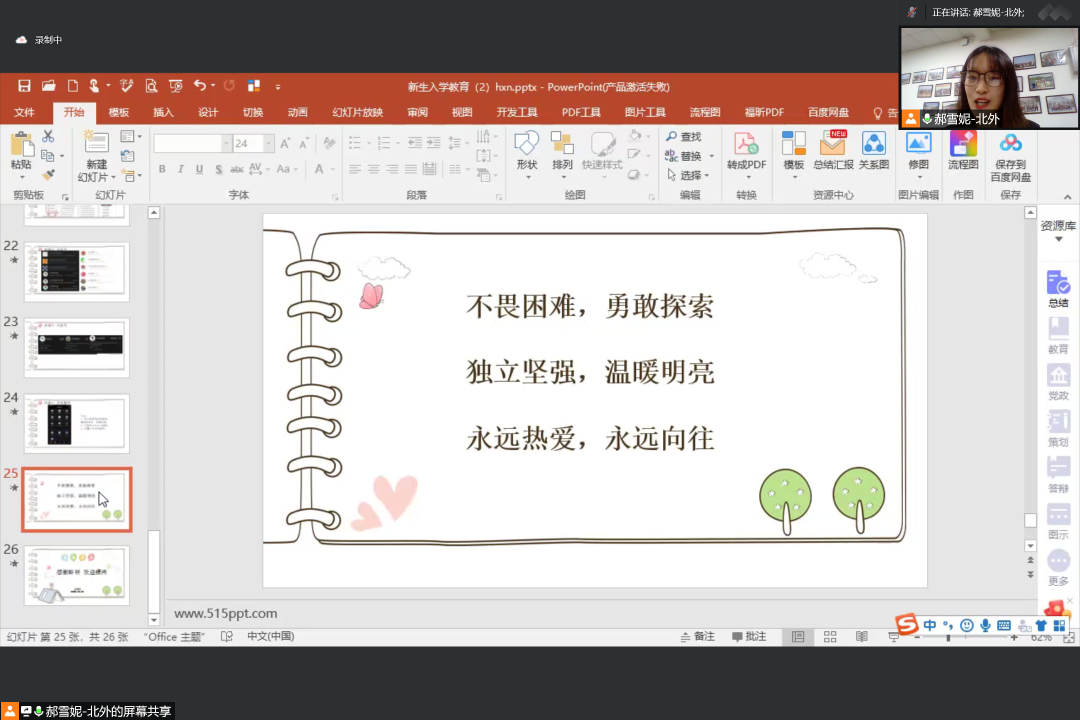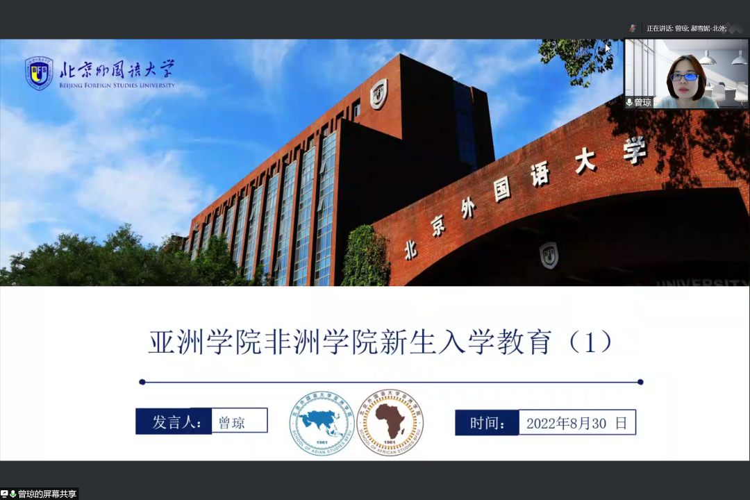 2022年8月30日15:00-17:00,beat365英国官网、非洲学院新生入学教育第一讲及第二讲于线上成功举办。本次系列教育讲座主讲人分别为新生班主任代表曾琼老师和辅导员郝雪妮老师。亚、非两院全体2022级新生参会学习。