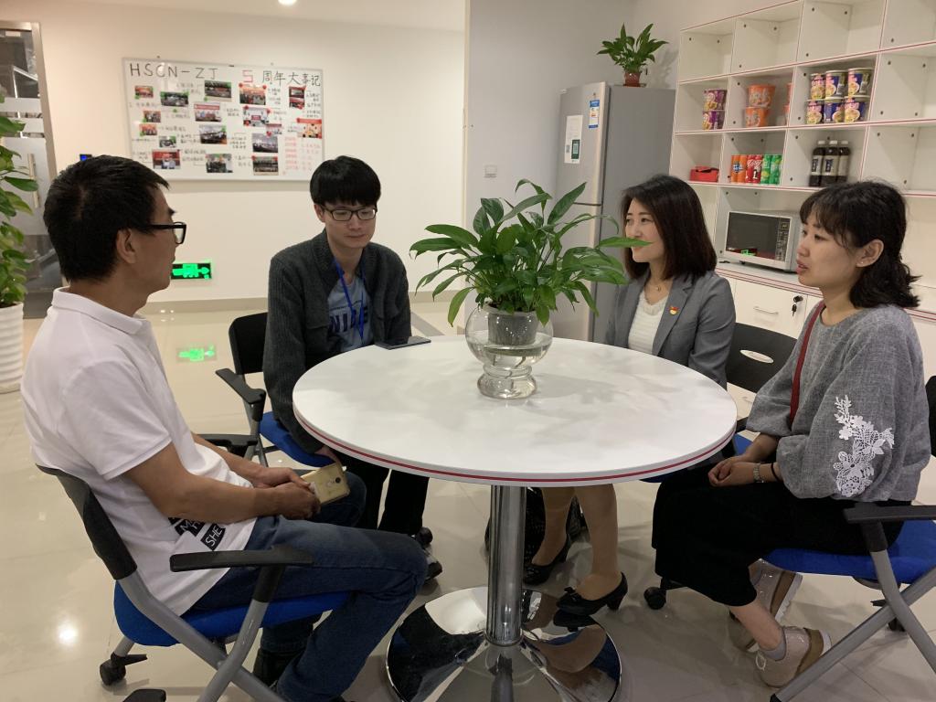 之后,党员教师又来到高新装备创业中心,在这里实习的朱正旭同学看到老师们的到来非常开心,说“看到老师的瞬间非常亲切!”她带老师们参观了公司、介绍了自己的工作内容。她对目前的实习工作比较满意,虽然日语的使用机会很少,但对英语要求较高,也表明了要不断提高自我的决心。党员教师们也关切询问了其通勤、就餐及同事关系等问题。