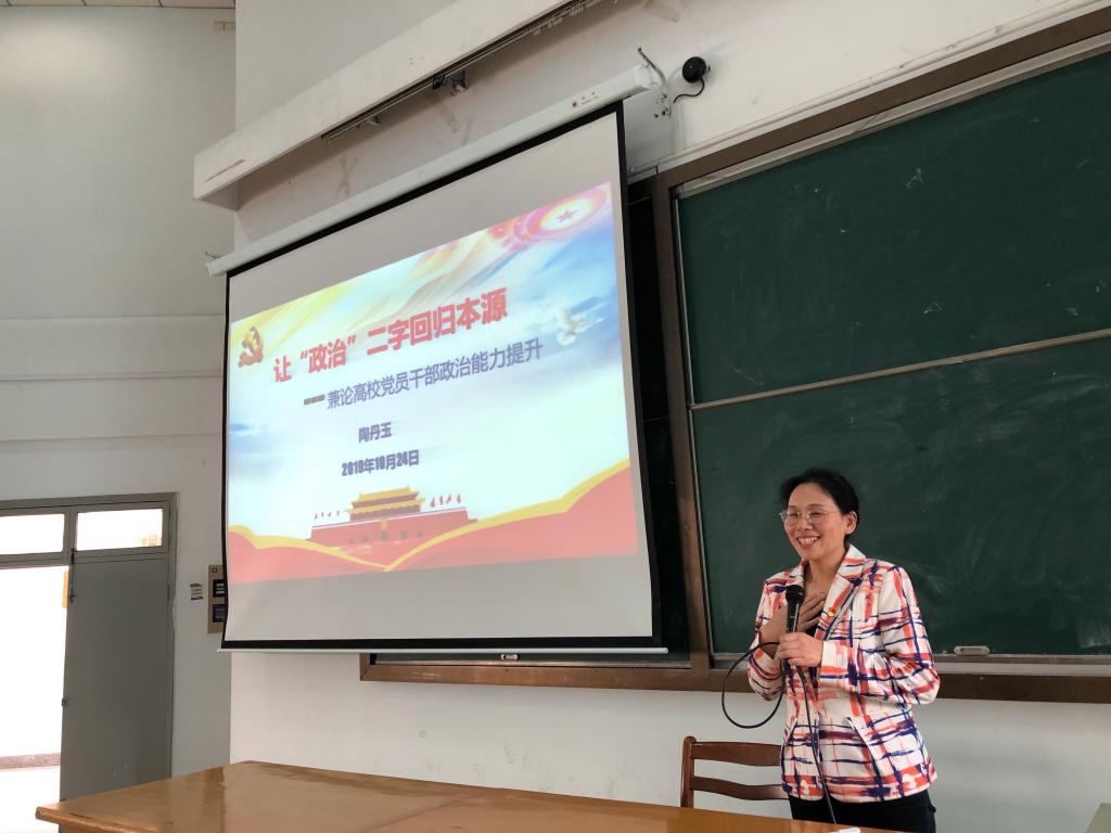 讲课开始之前,陶丹玉表达了对beat365在线唯一官网和数理与信息工程学院全体班子成员和中心组理论学习成员的衷心感谢,她从两个学院多次的集中学习和交流讨论中得到诸多启发,受益匪浅。接着,她从政治能力的概念和内涵、新时代为什么要强调政治能力、如何提高政治能力等几个方面展开论述。
