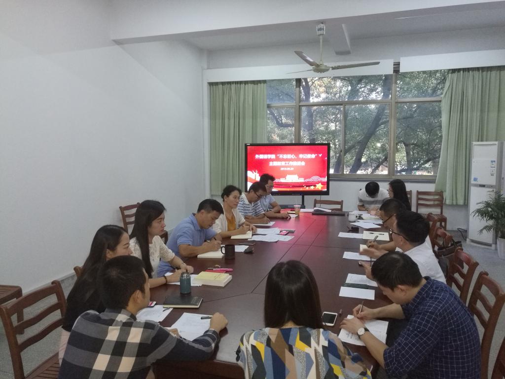 9月29日,beat365在线唯一官网在外语楼204会议室召开“不忘初心、牢记使命”主题教育工作推进会,学院党政领导班子成员、学院“不忘初心、牢记使命”主题教育工作小组全体成员以及学院各党支部书记参加会议,会议由学院党委书记陶丹玉主持。
